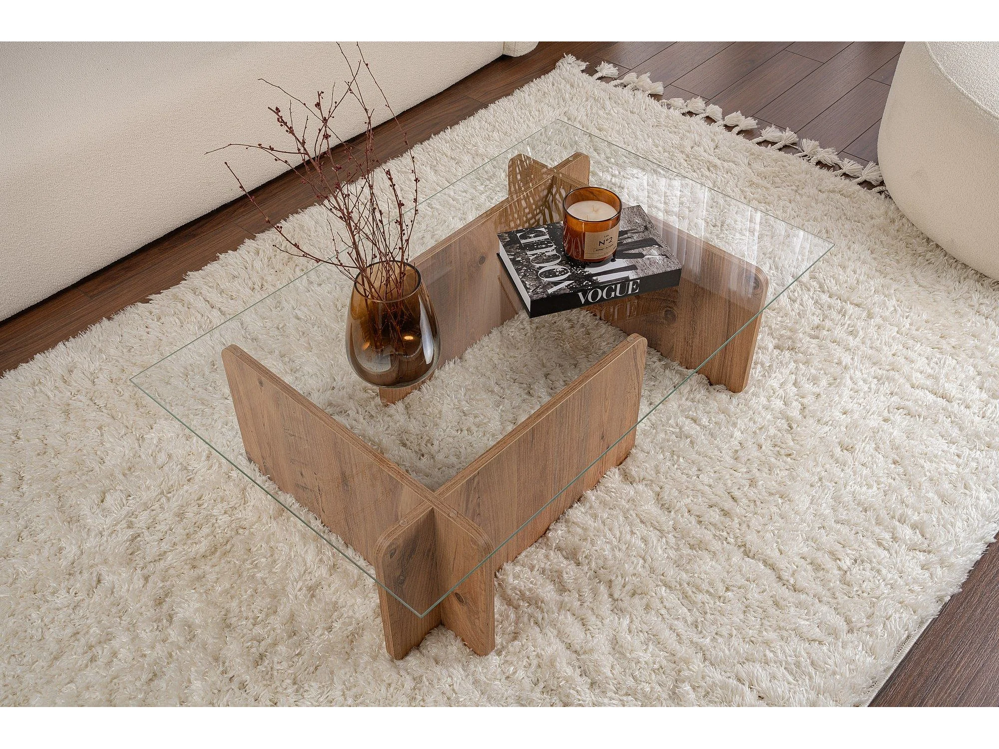 Table basse en bois "Flavio" - 105 x 65 x 30 cm - Pin atlantique
