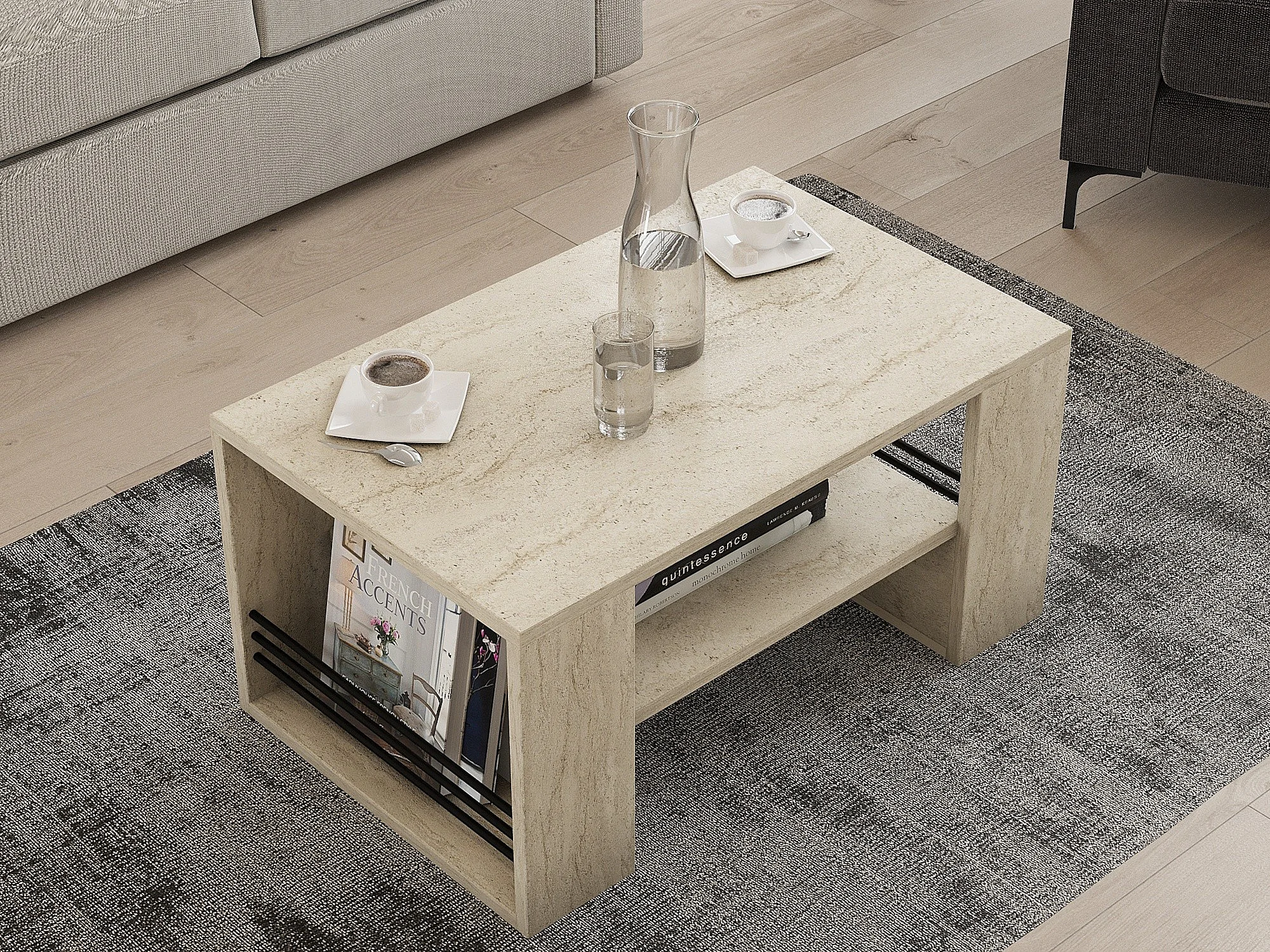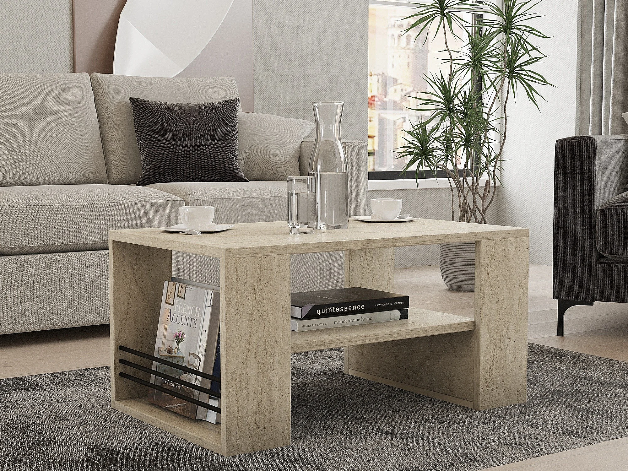 Table basse en bois "Iris" - 80 x 50 x 40 cm - Travertin