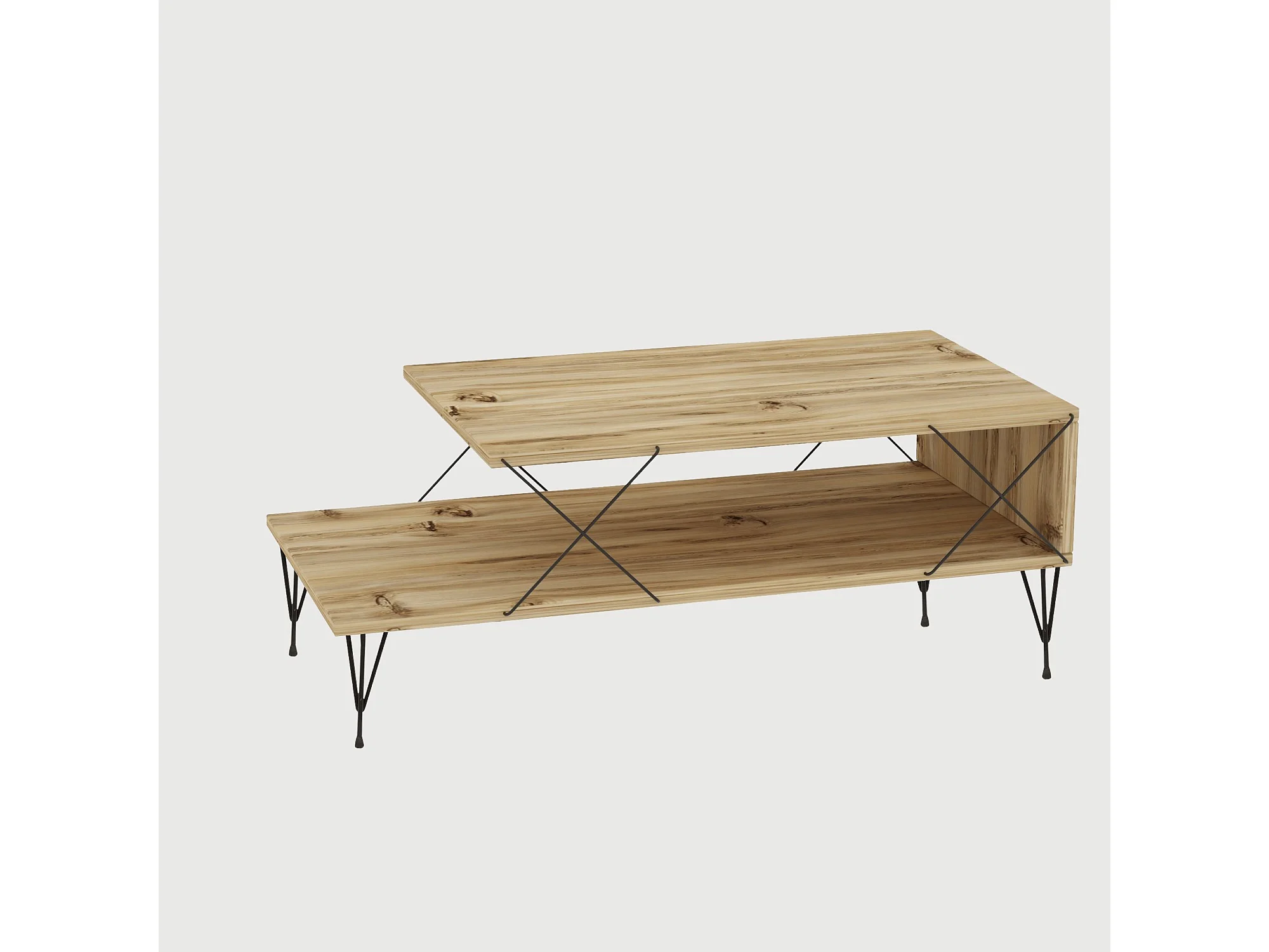 Table basse 110 cm décor bois clair et pied luge métal noir - CELIA