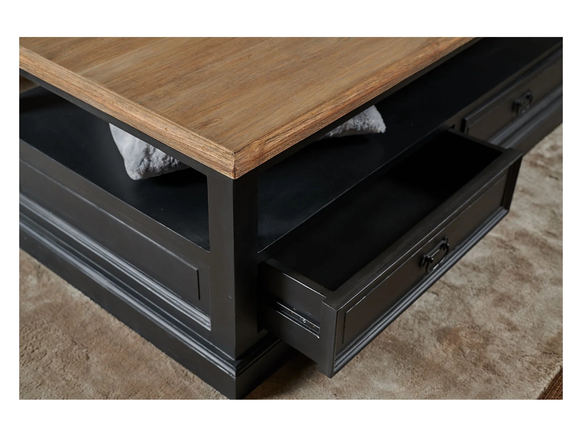 Table basse en bois noir 4 tiroirs 1 niche - DALILA