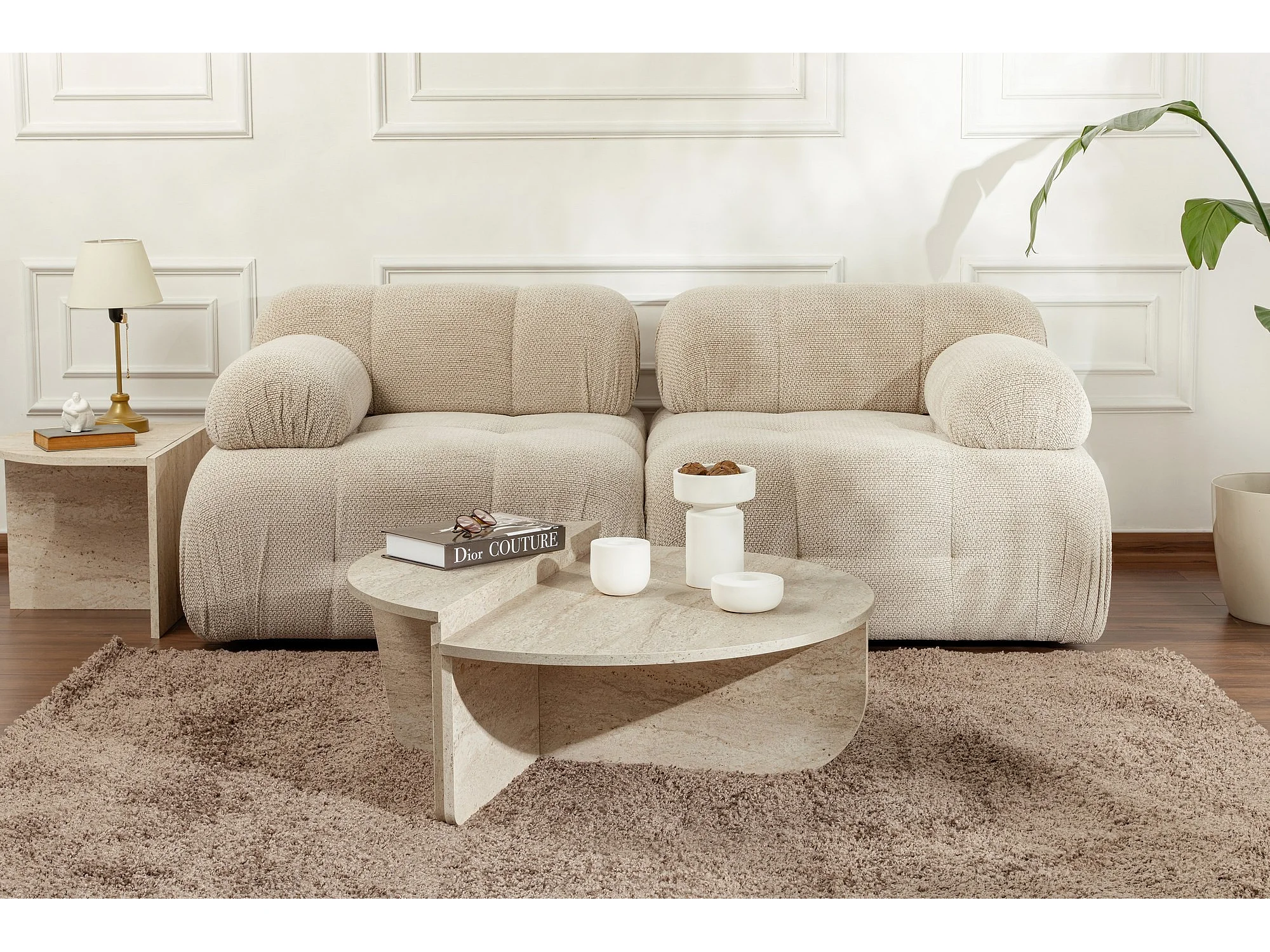 Table basse en bois "Orion" - 90 x 60 x 30 cm - Travertin