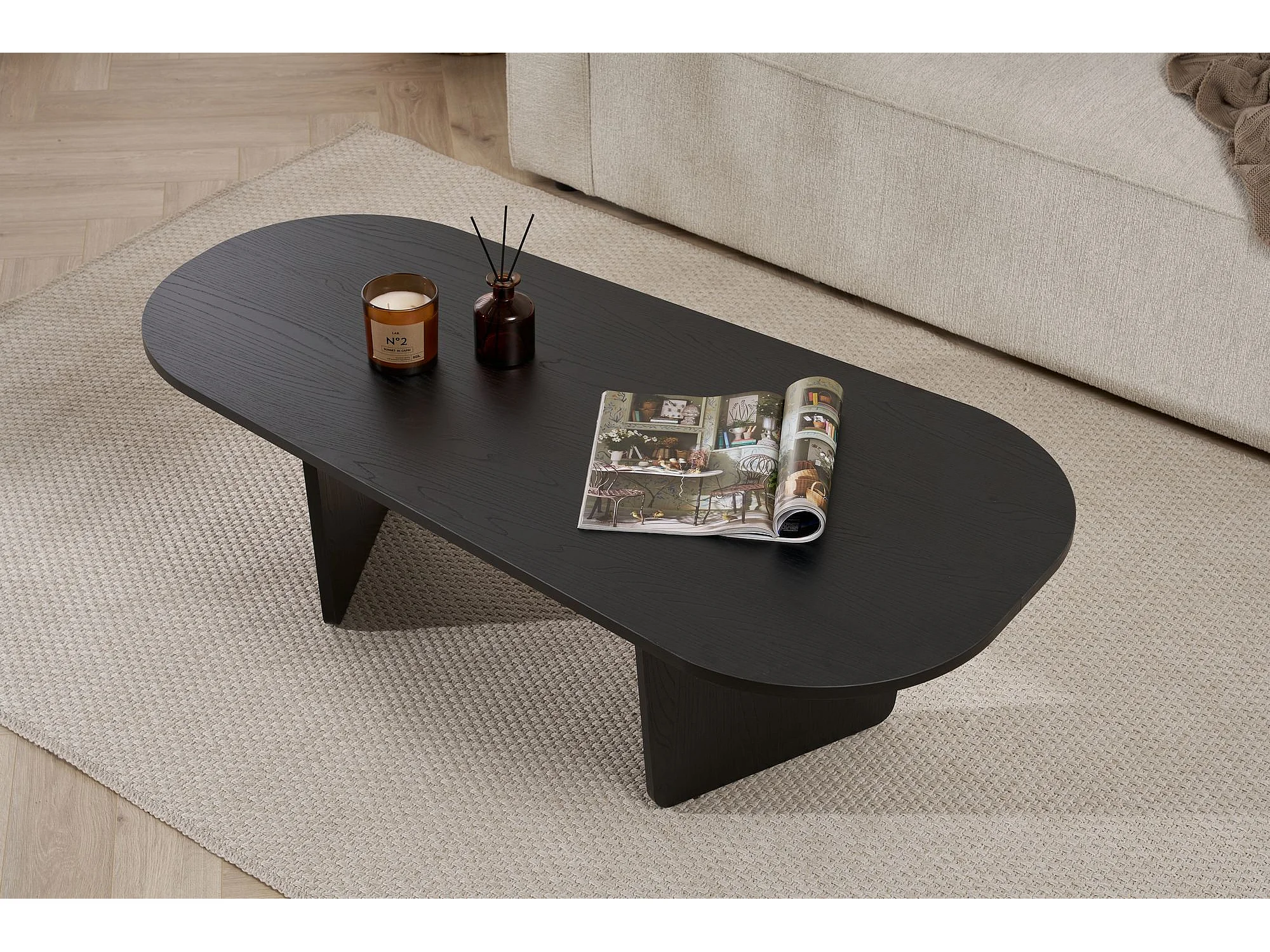 Table basse en bois "Ovalis" - 130 x 65 x 40 cm - Bois Noir
