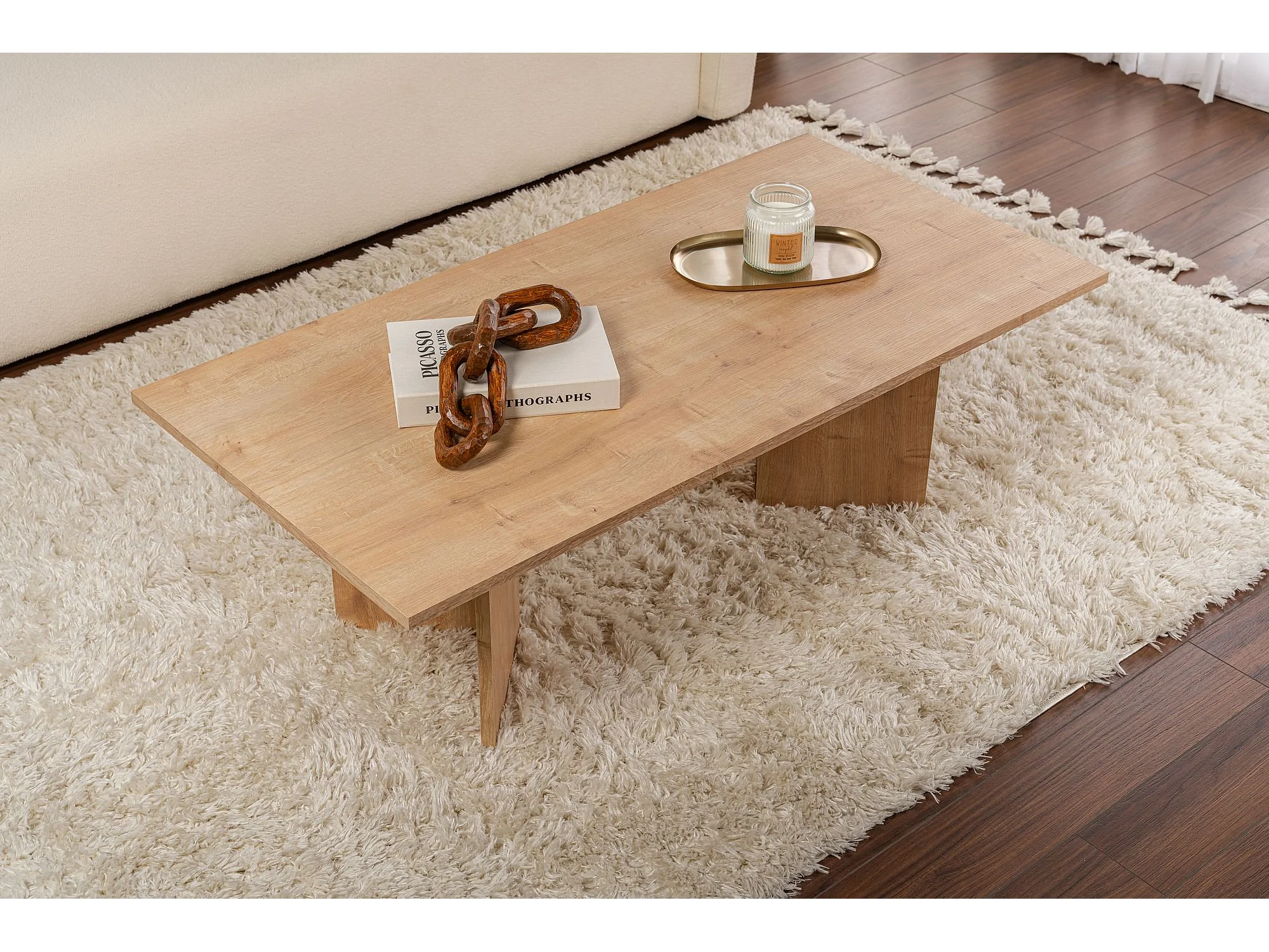 Table basse moderne bois chêne clair massif - BOSTON