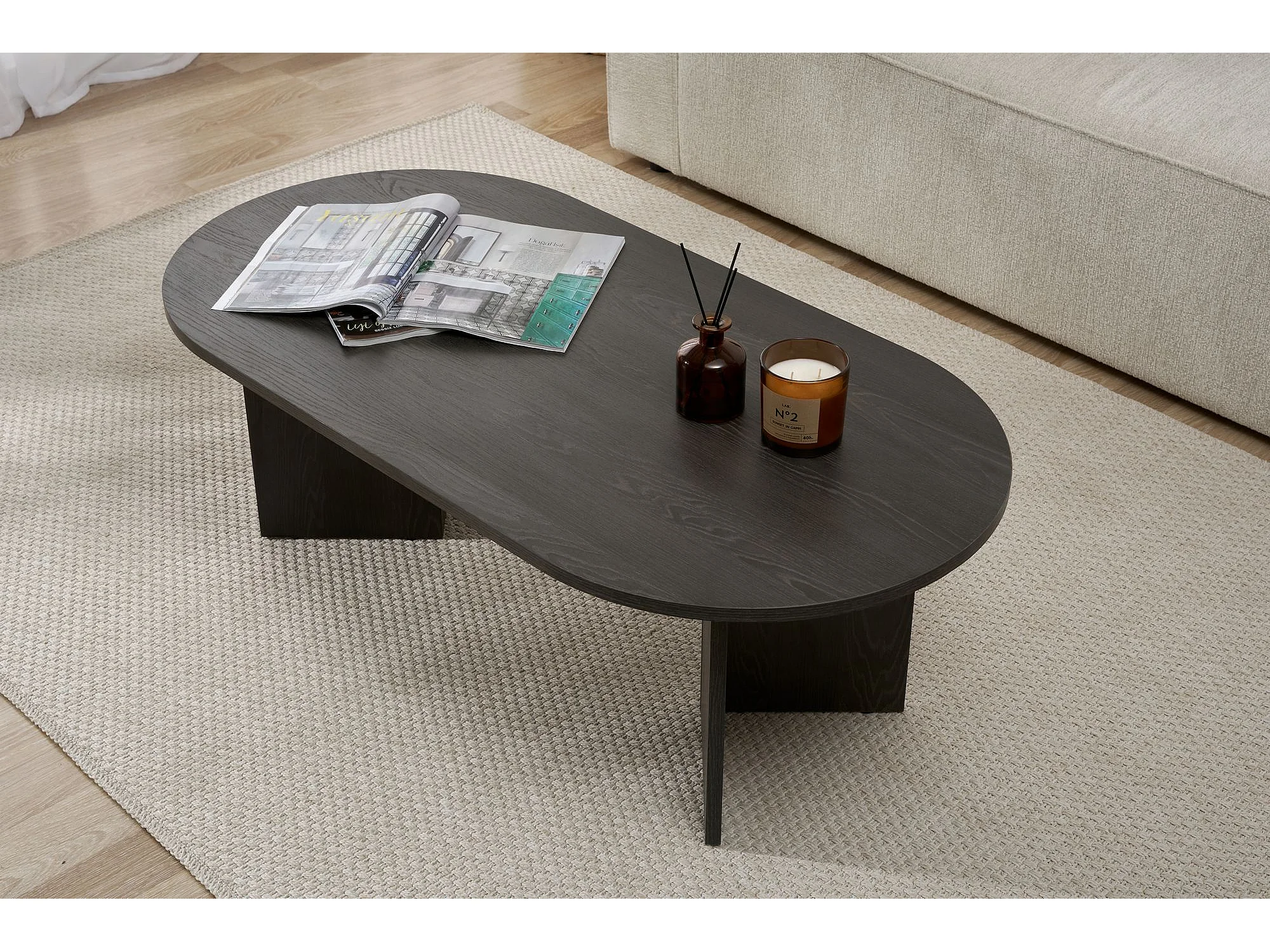 Table basse en bois "Sable" - 60 x 119 x 40 cm - Lumière Noire