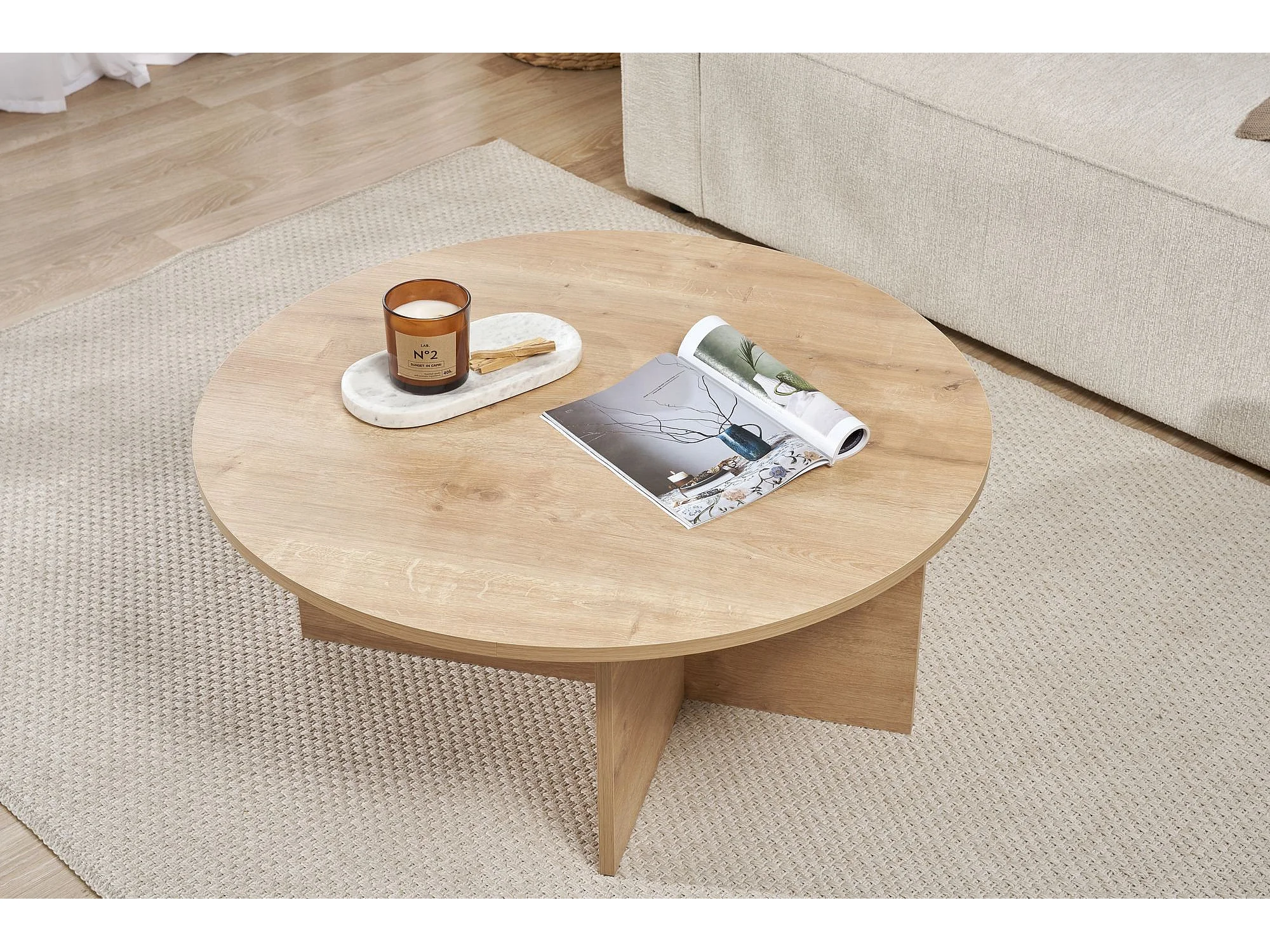 Table basse en bois "Soleil" - 90 x 90 x 40 cm - Chêne Saphir