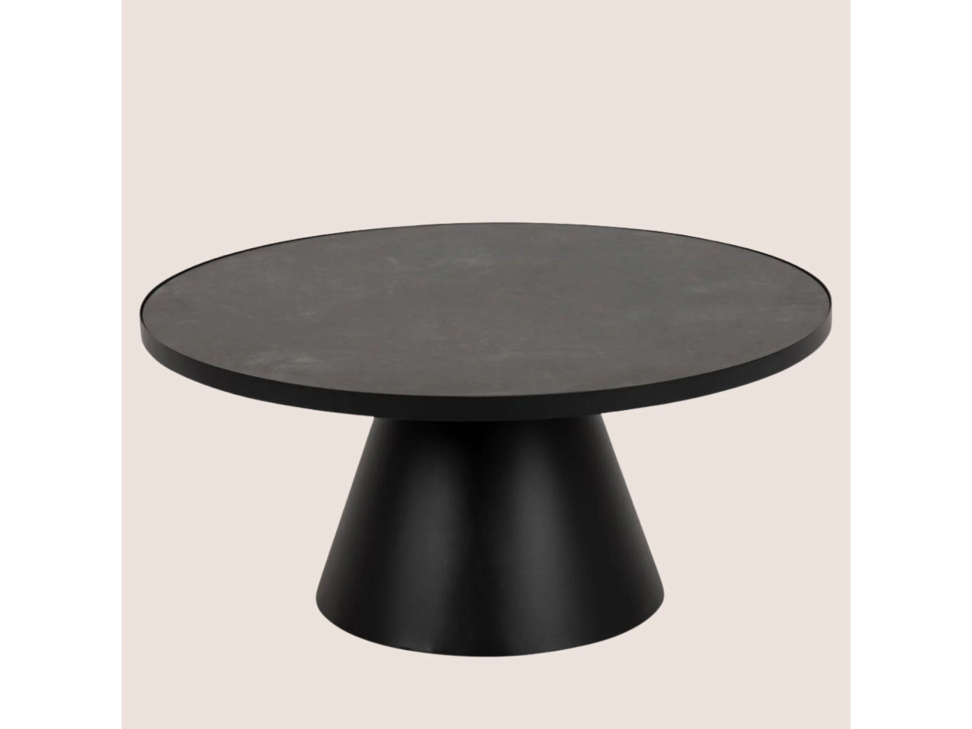 Table basse ronde en céramique et métal noir D85 - GIROLLE
