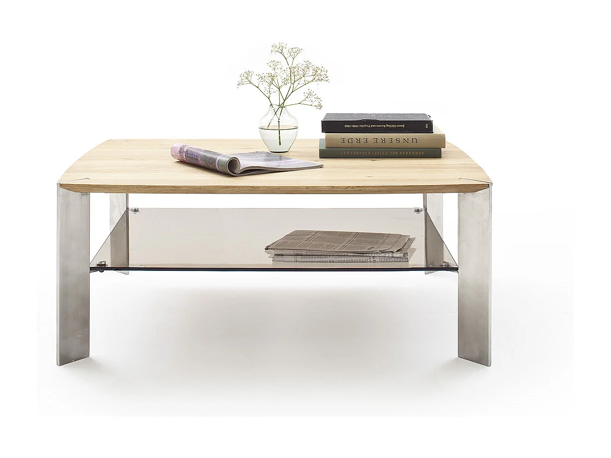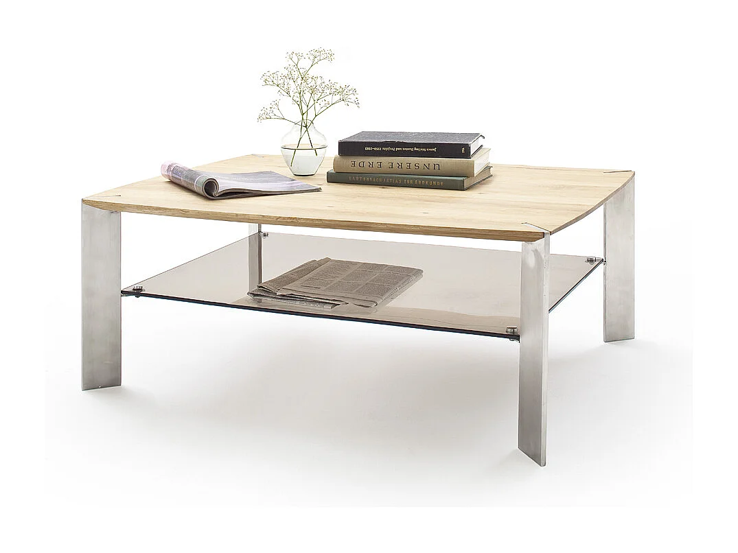 Table basse en chêne massif et verre - L120 x H41 x P70 cm