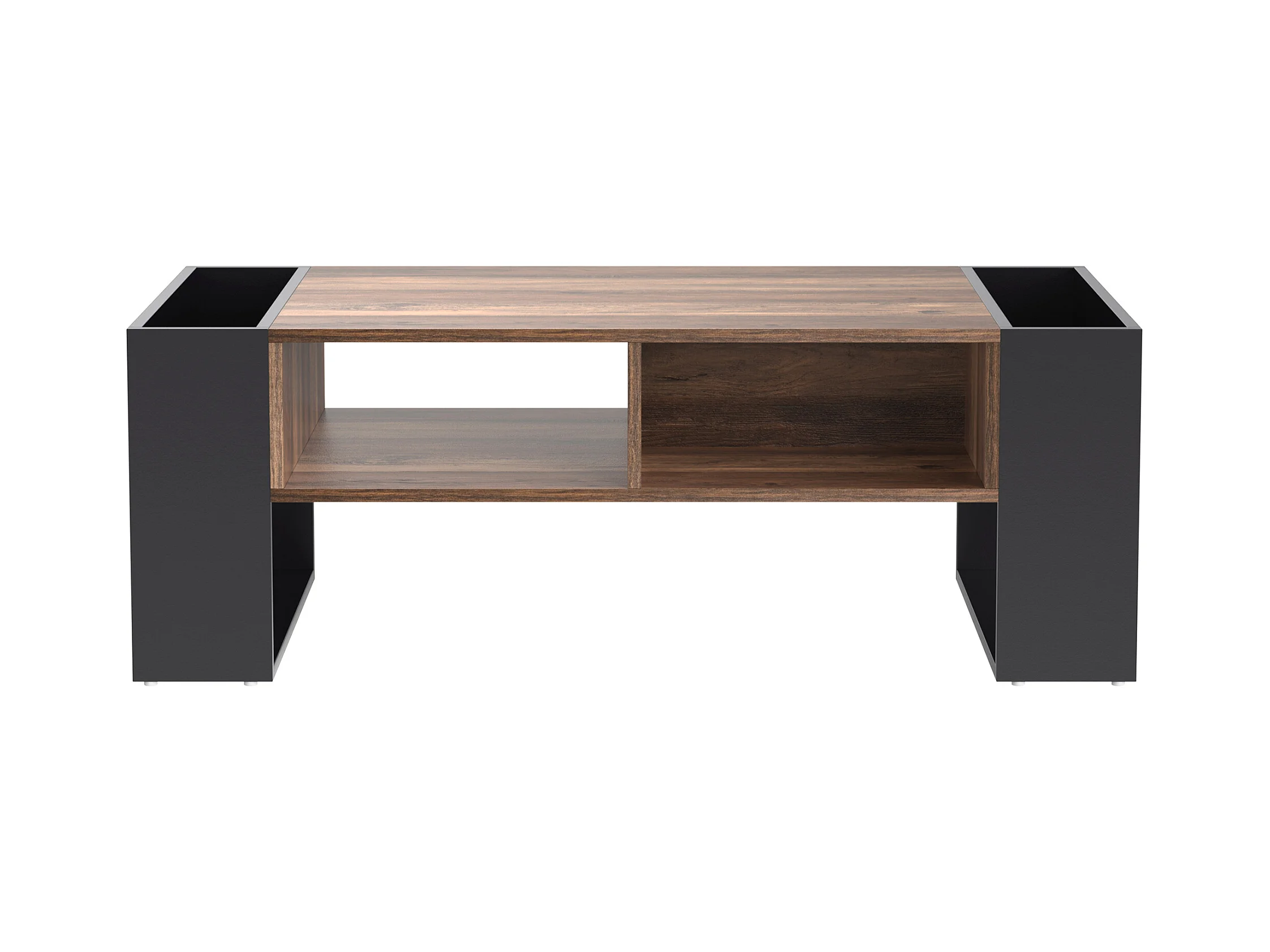 Table basse avec rangement marron et anthracite avec des pieds bois noir Kalieto 110cm