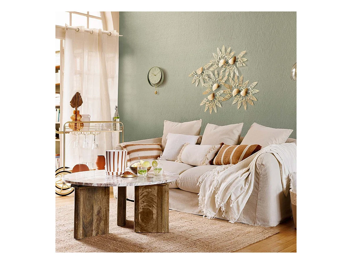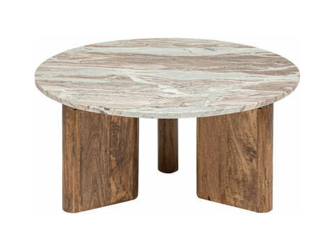 Table Basse en Marbre & Bois "Coppa" 91cm Beige