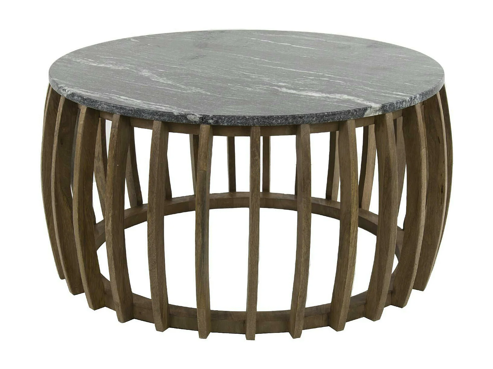 Table basse en marbre noir et bois de manguier ø80 cm DELHI