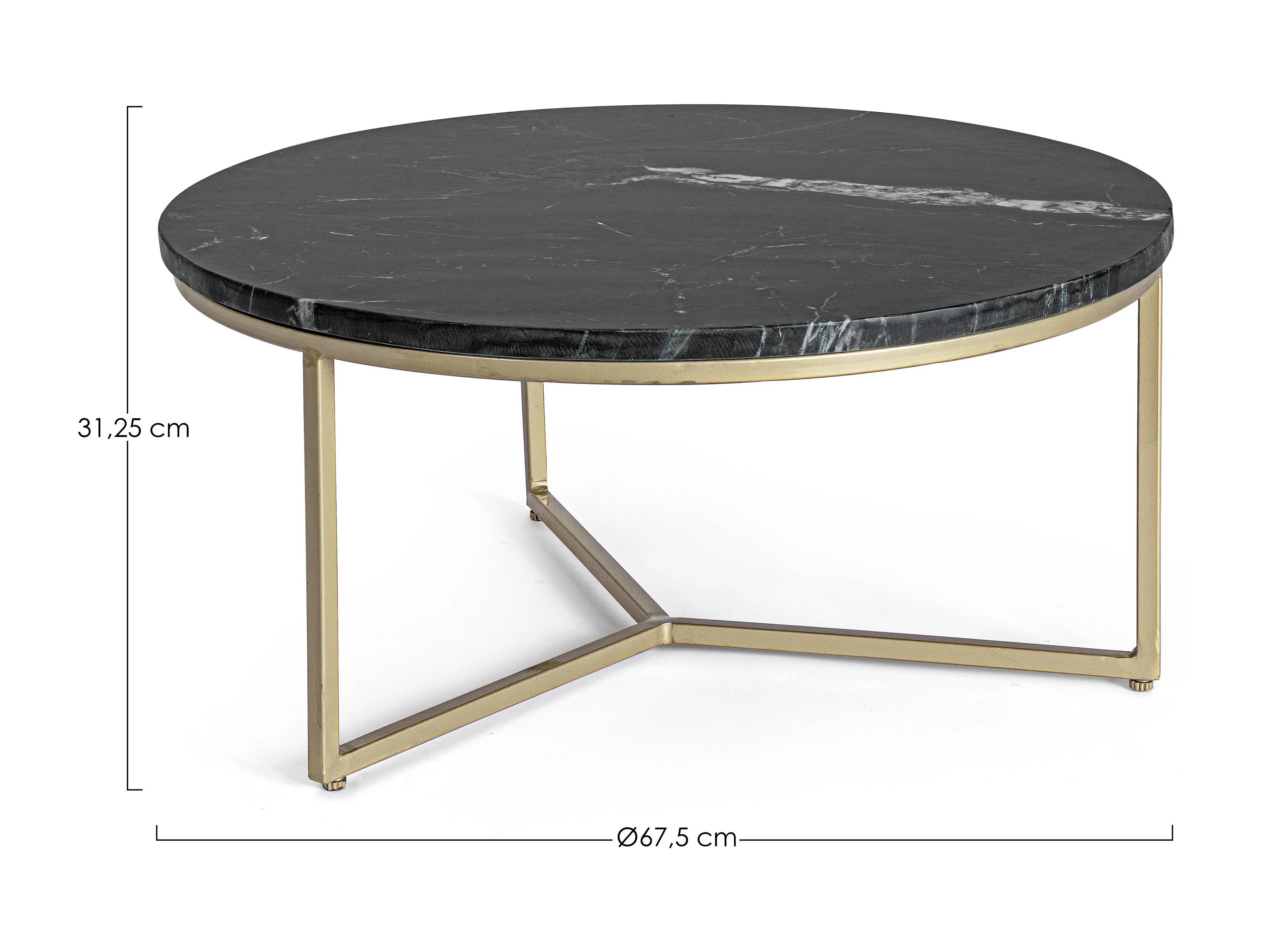 Table basse en marbre noir et pieds acier doré Pery D 67.5cm
