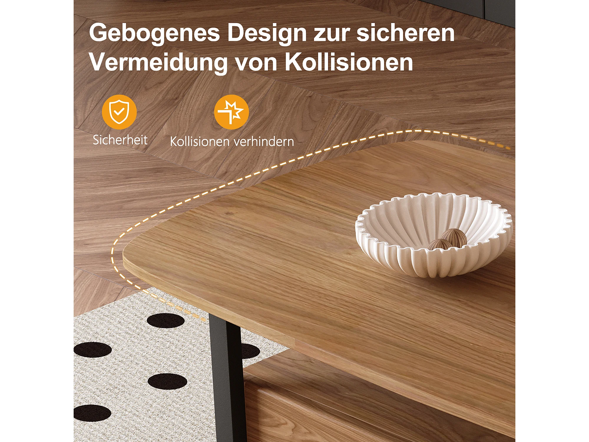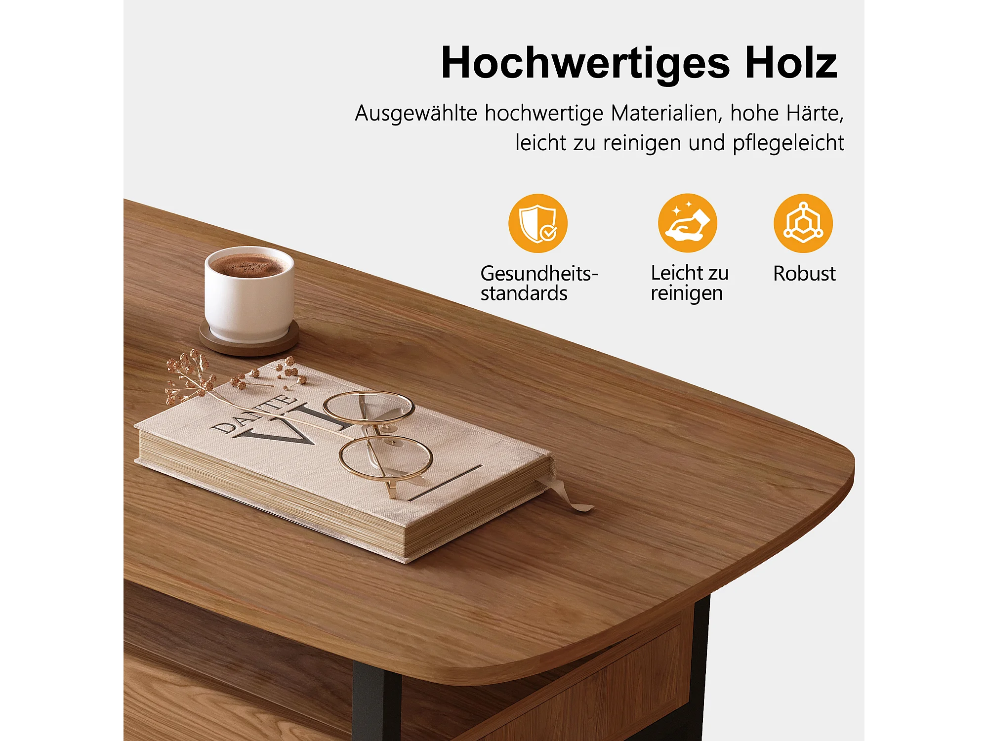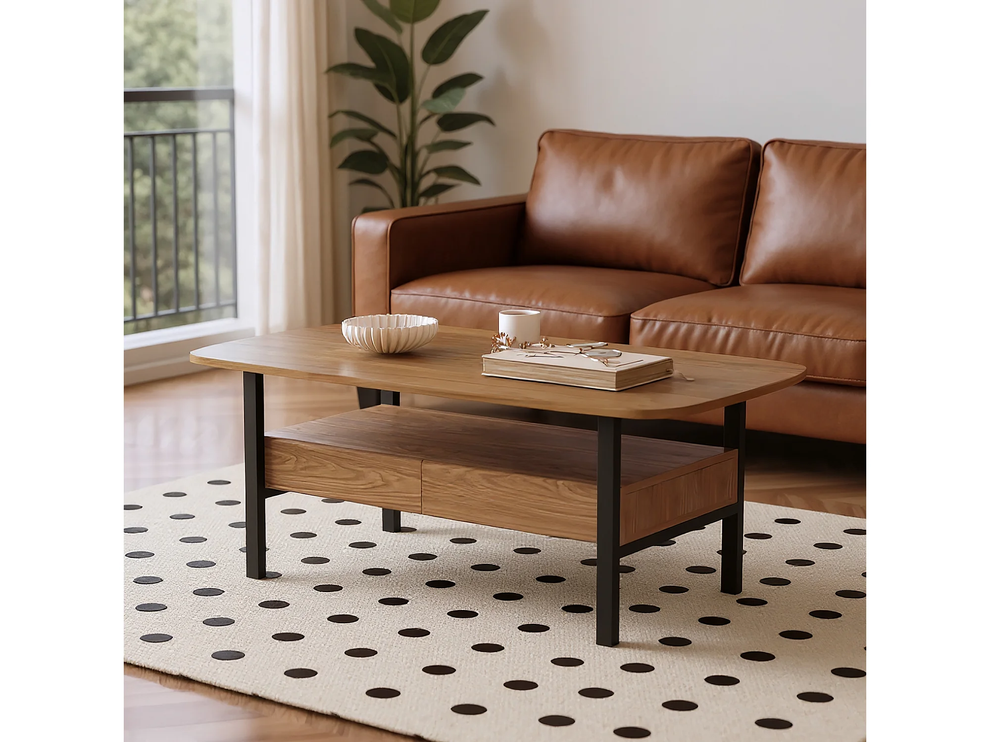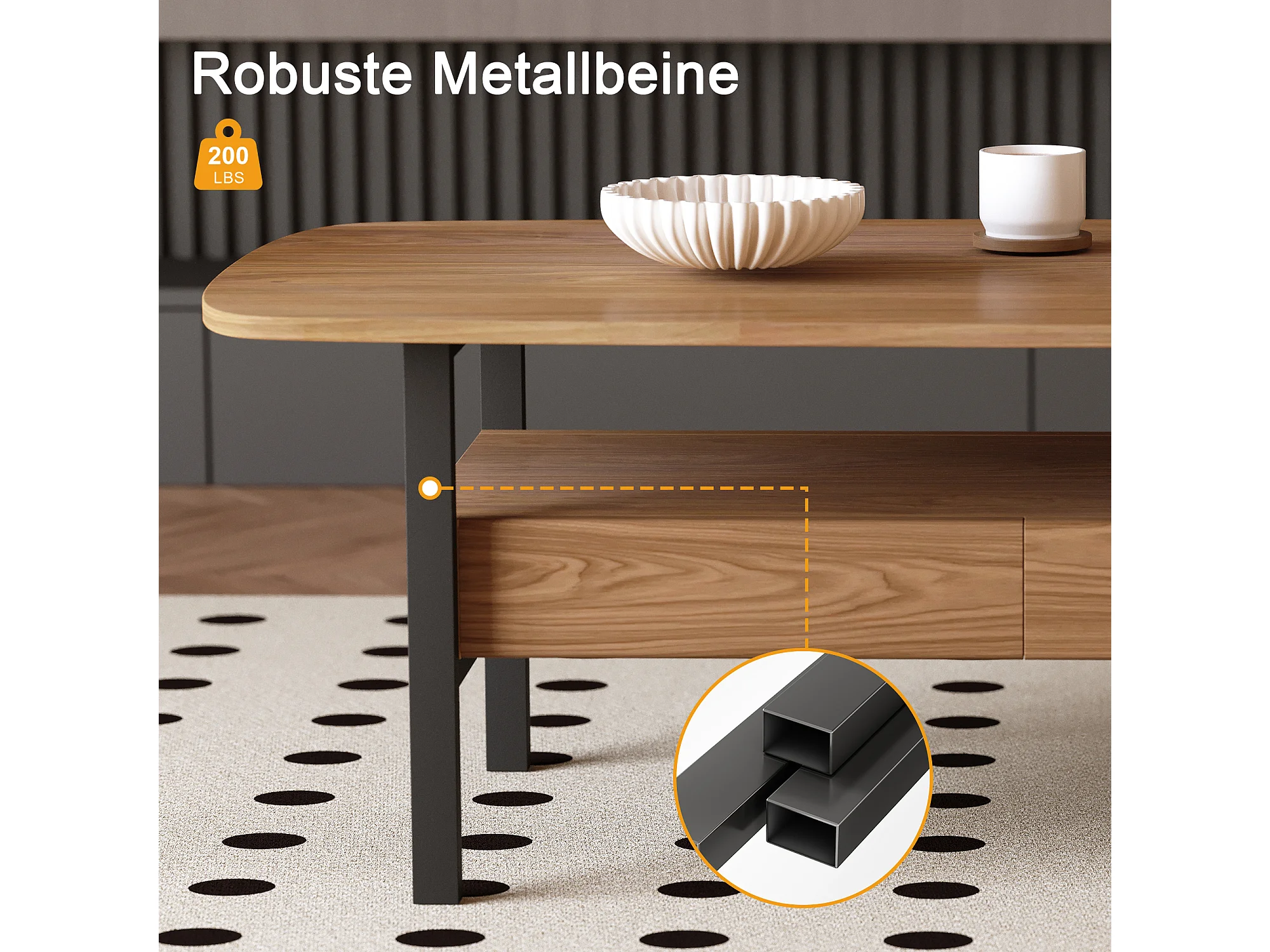 Table Basse en Noyer avec Grand Espace de Rangement et Pieds en métal, 120x56x42,5 cm, Table de Salon Vintage, Petite Table Basse Facile à Entretenir pour Salon, Bu