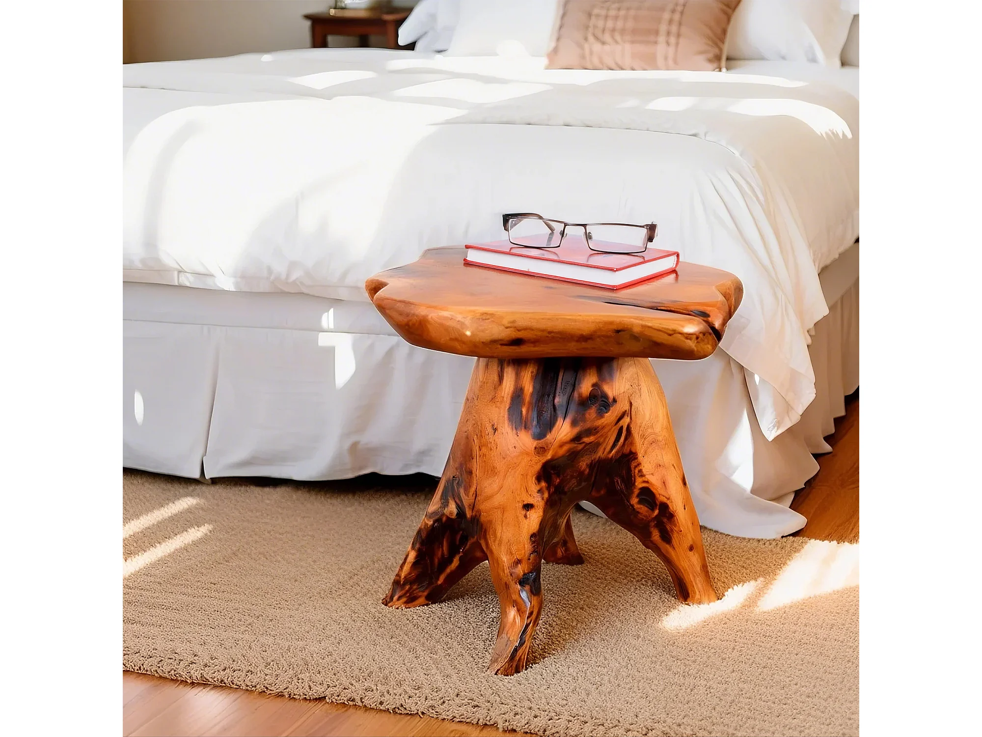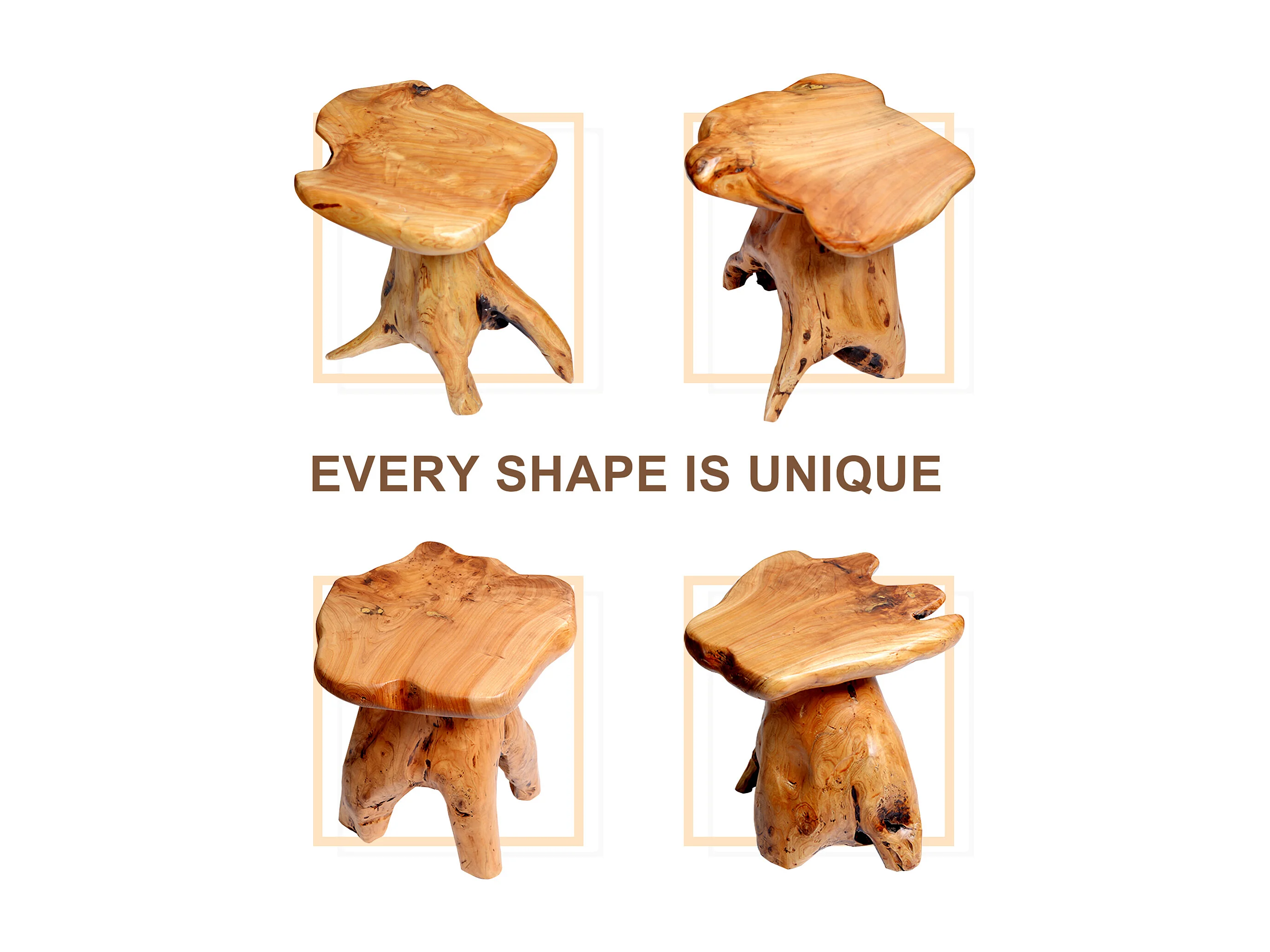 Table basse en racines de pin massif, multifonction, banc, porte-plantes, design irrégulier, bois naturel (L30 x l35 x H37 cm)