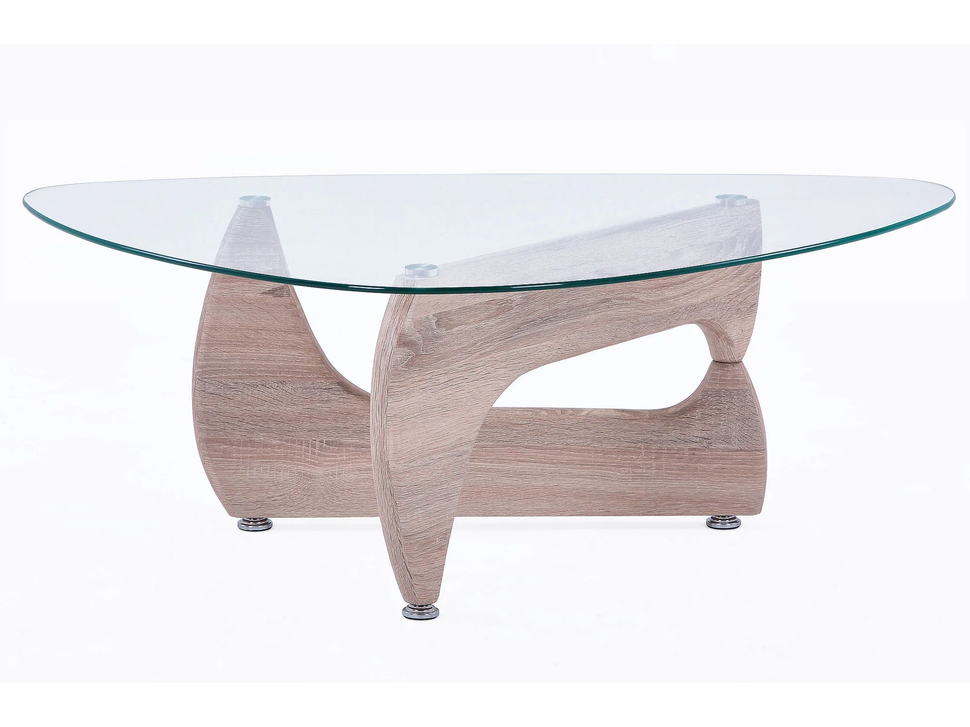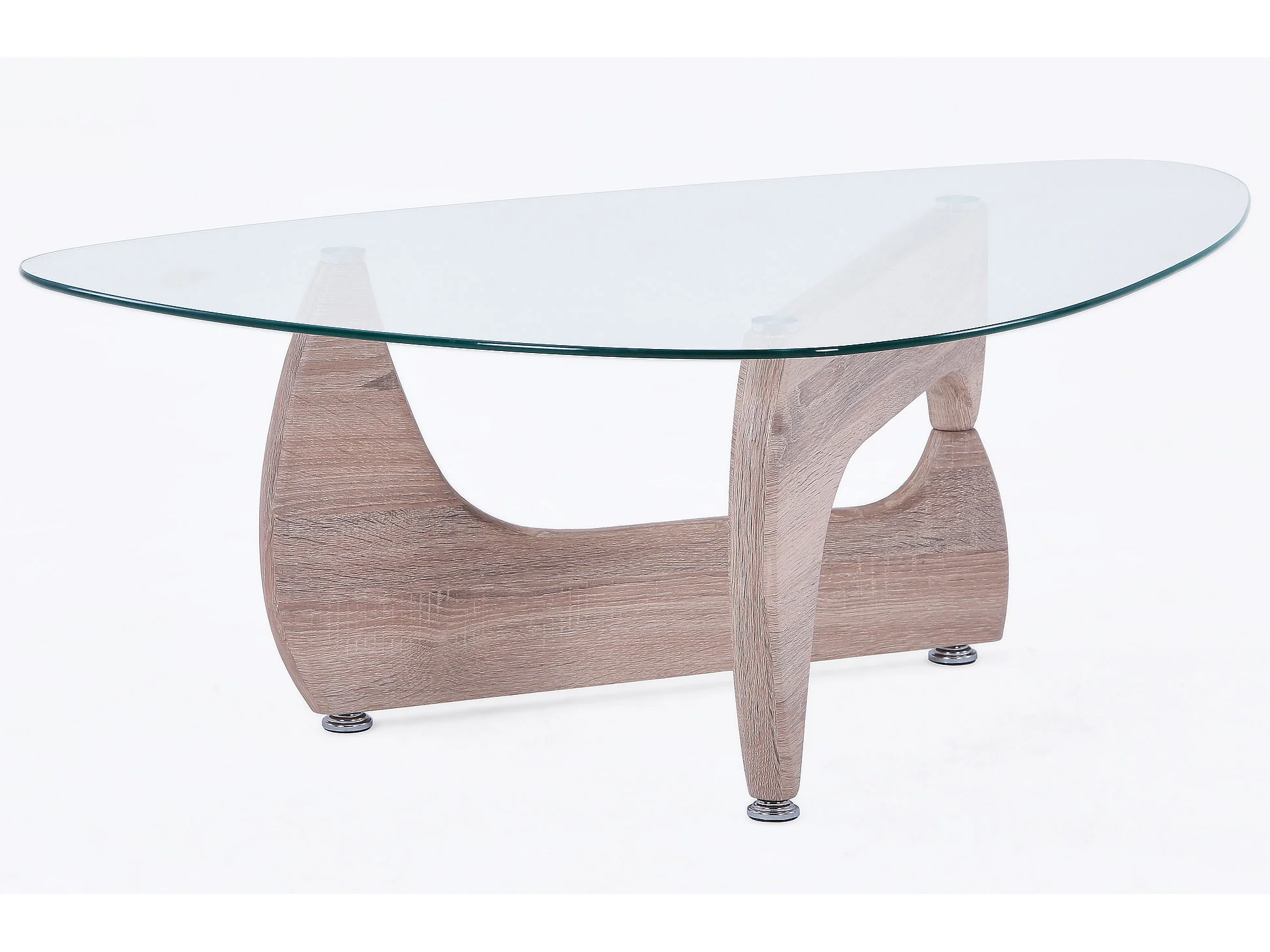 Table basse en verre avec pieds coloris chêne - Longueur 110 x Profondeur 70 x Hauteur 40 cm
