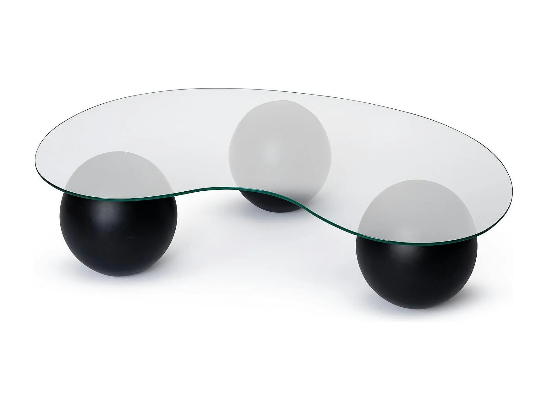 Table basse en verre design – 3 pieds boules noirs KOCHI
