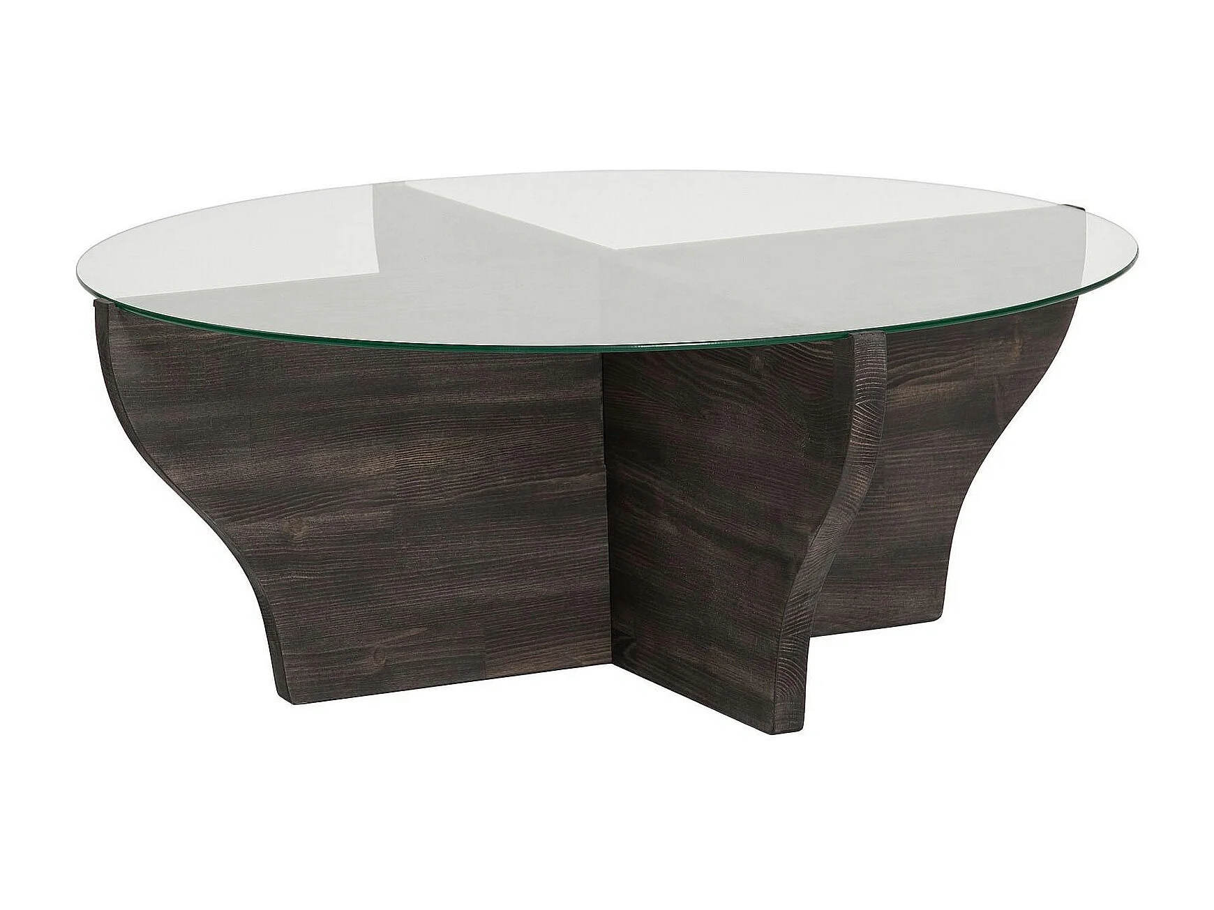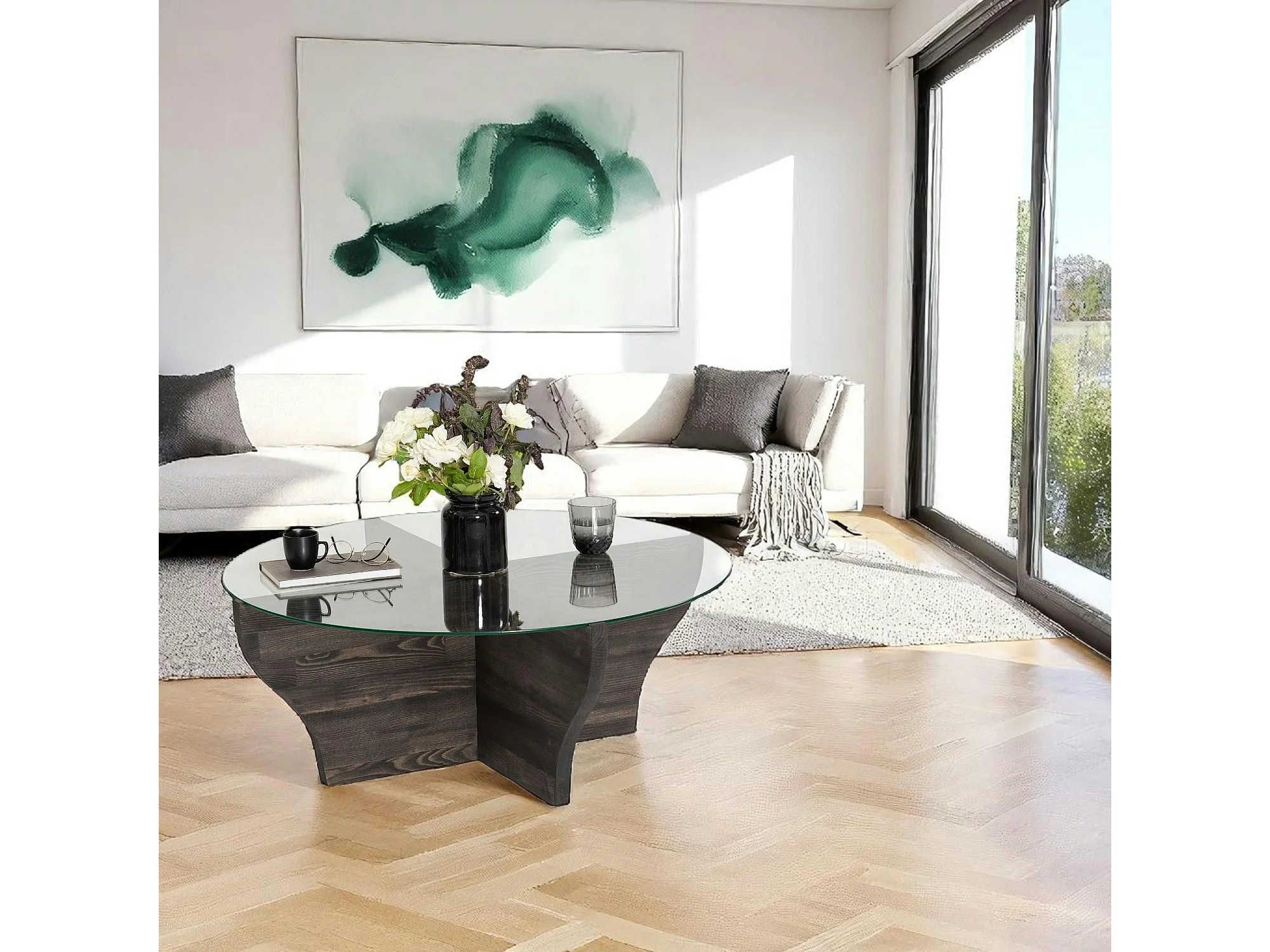 Table basse en verre et bois gris foncé - pied en X, ANZIO