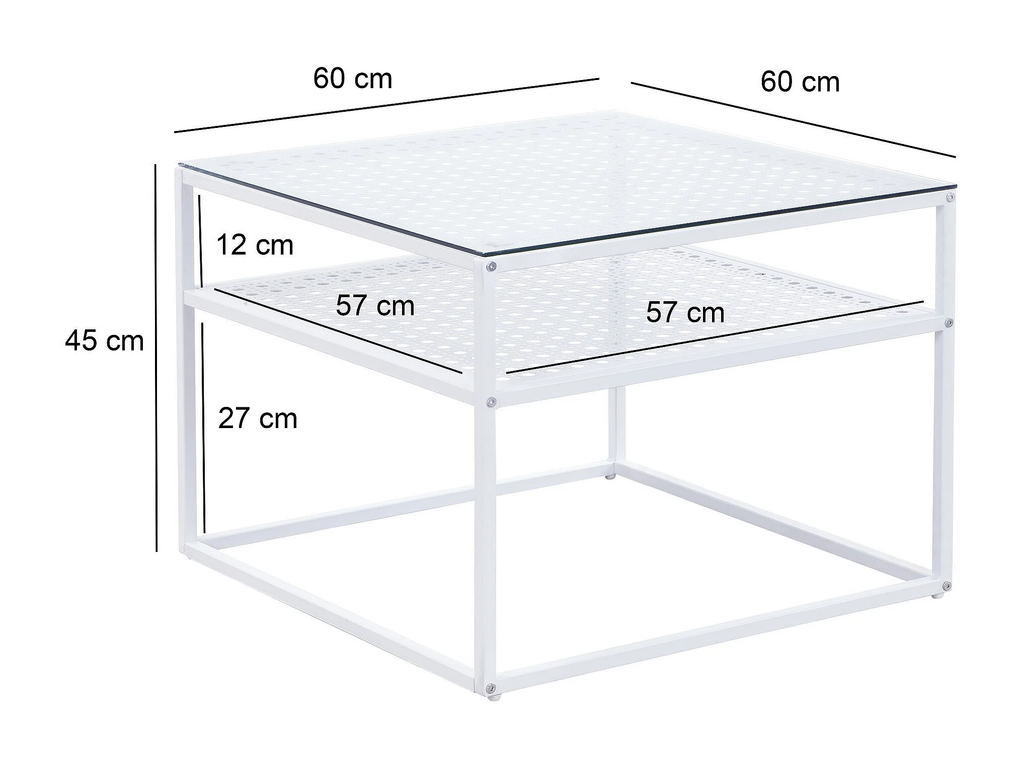 Table basse en verre et métal, carrée, 60 cm, pour salon, rangement, moderne