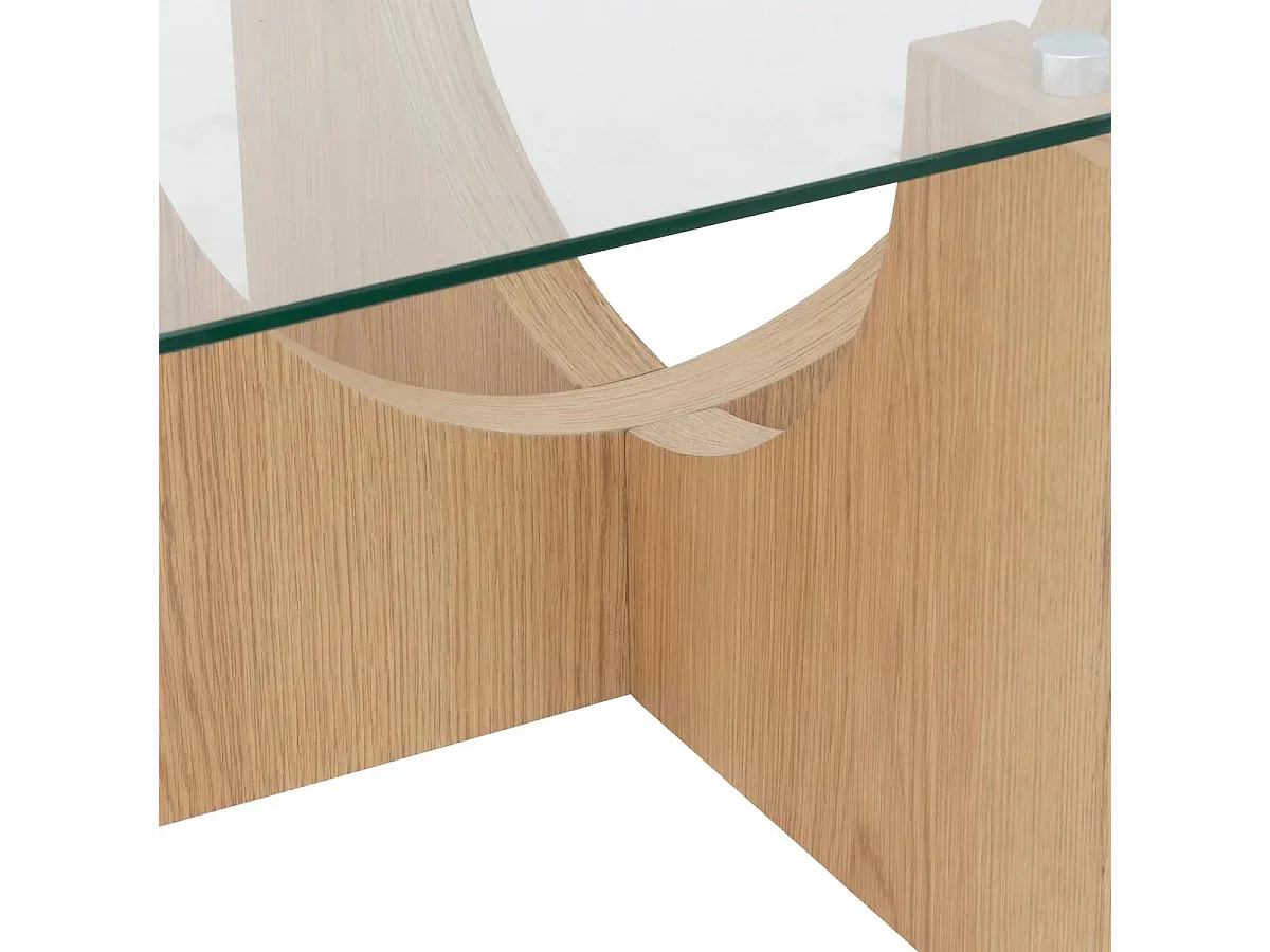 Table Basse en Verre "Etini" 85cm Transparent & Naturel