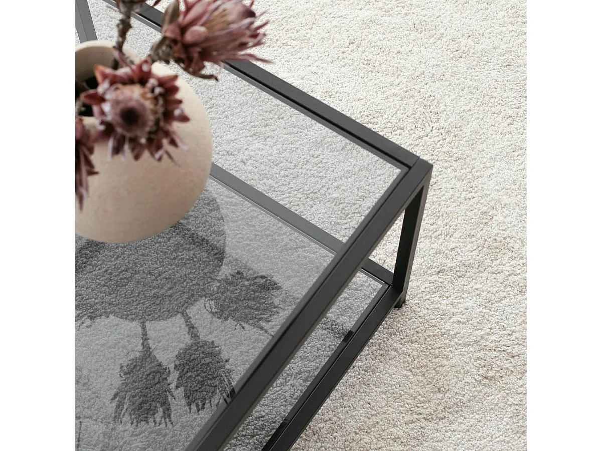 Table basse en verre fumé rectangulaire, 2 plateaux TULUM