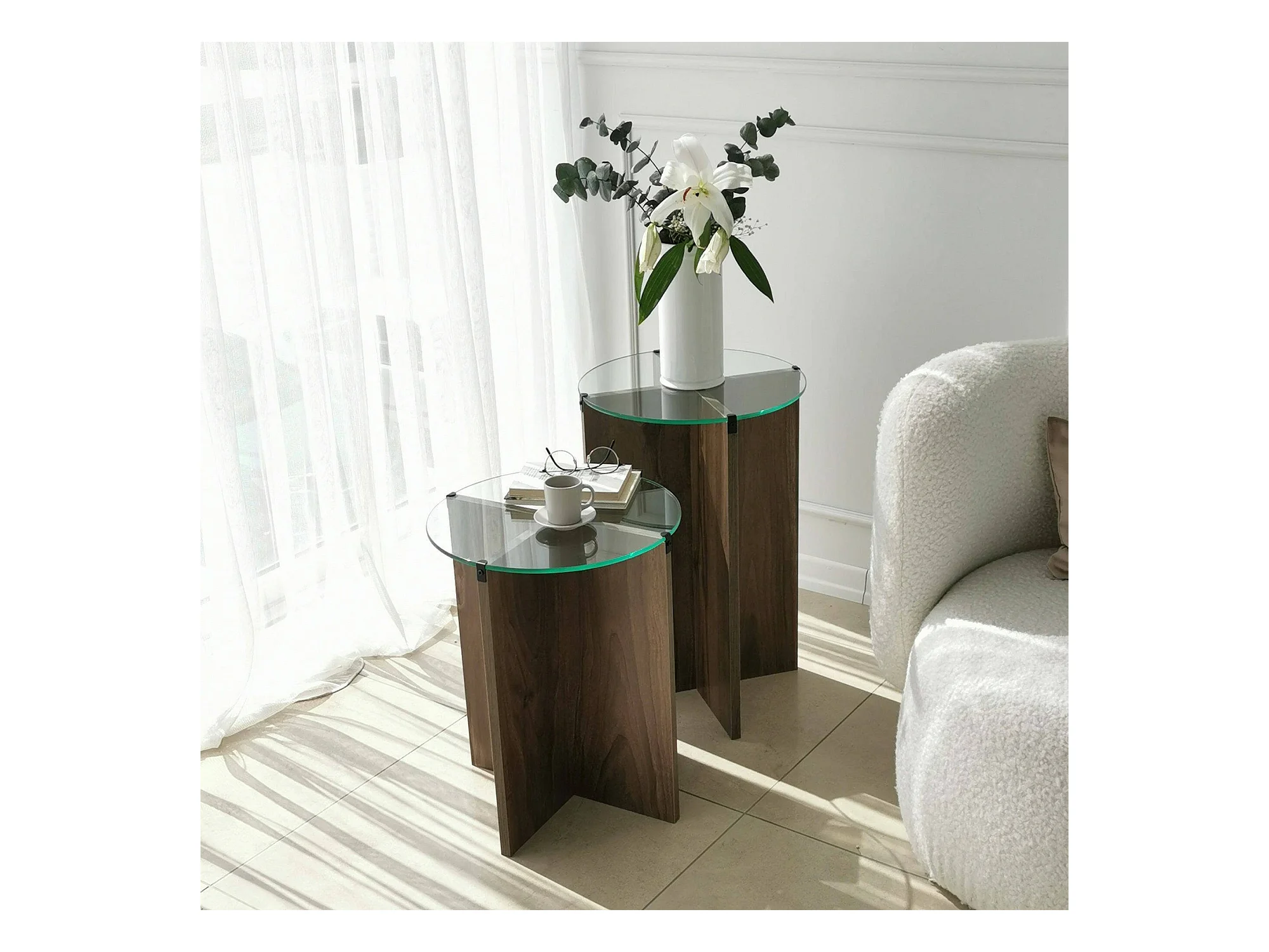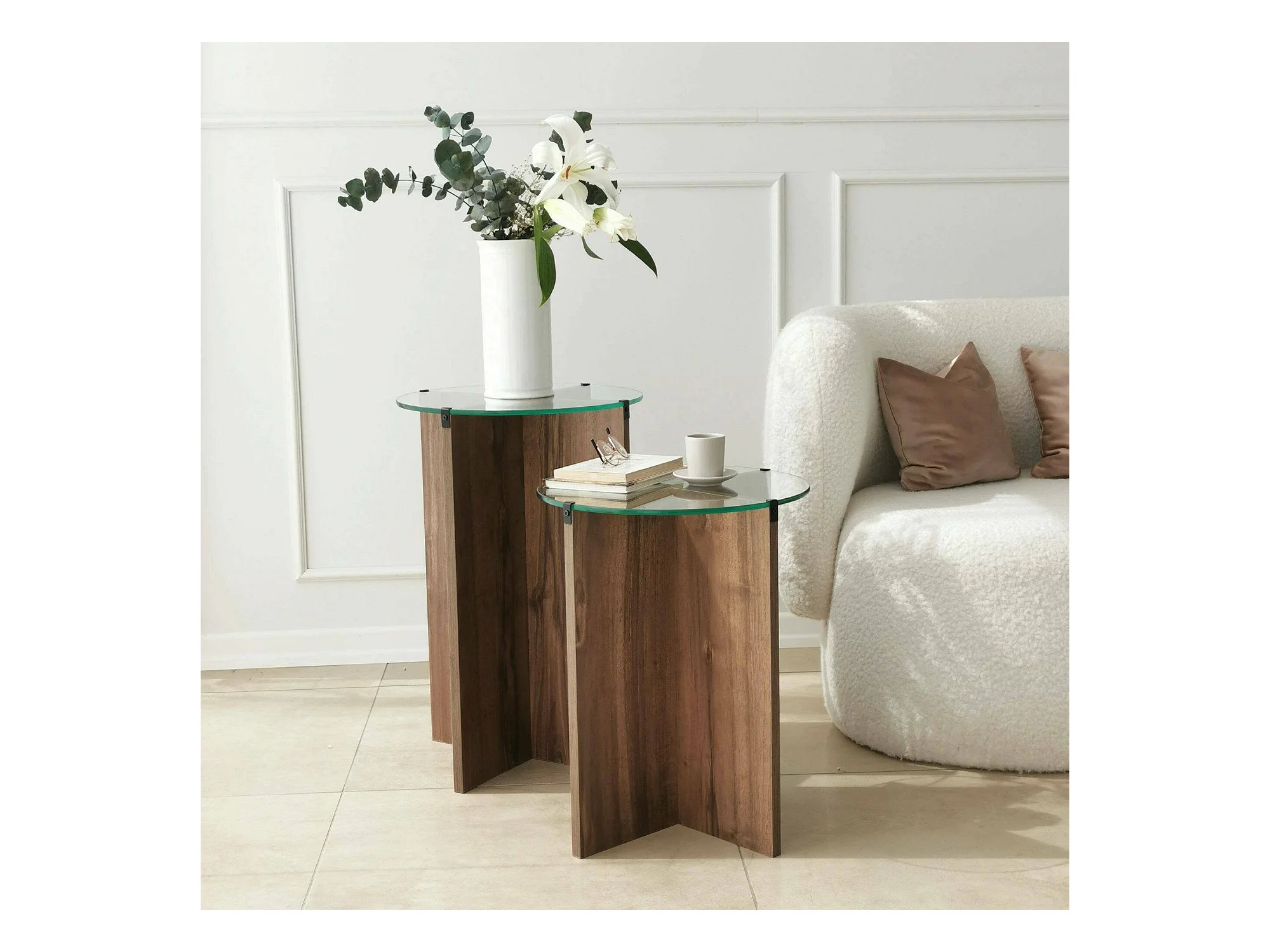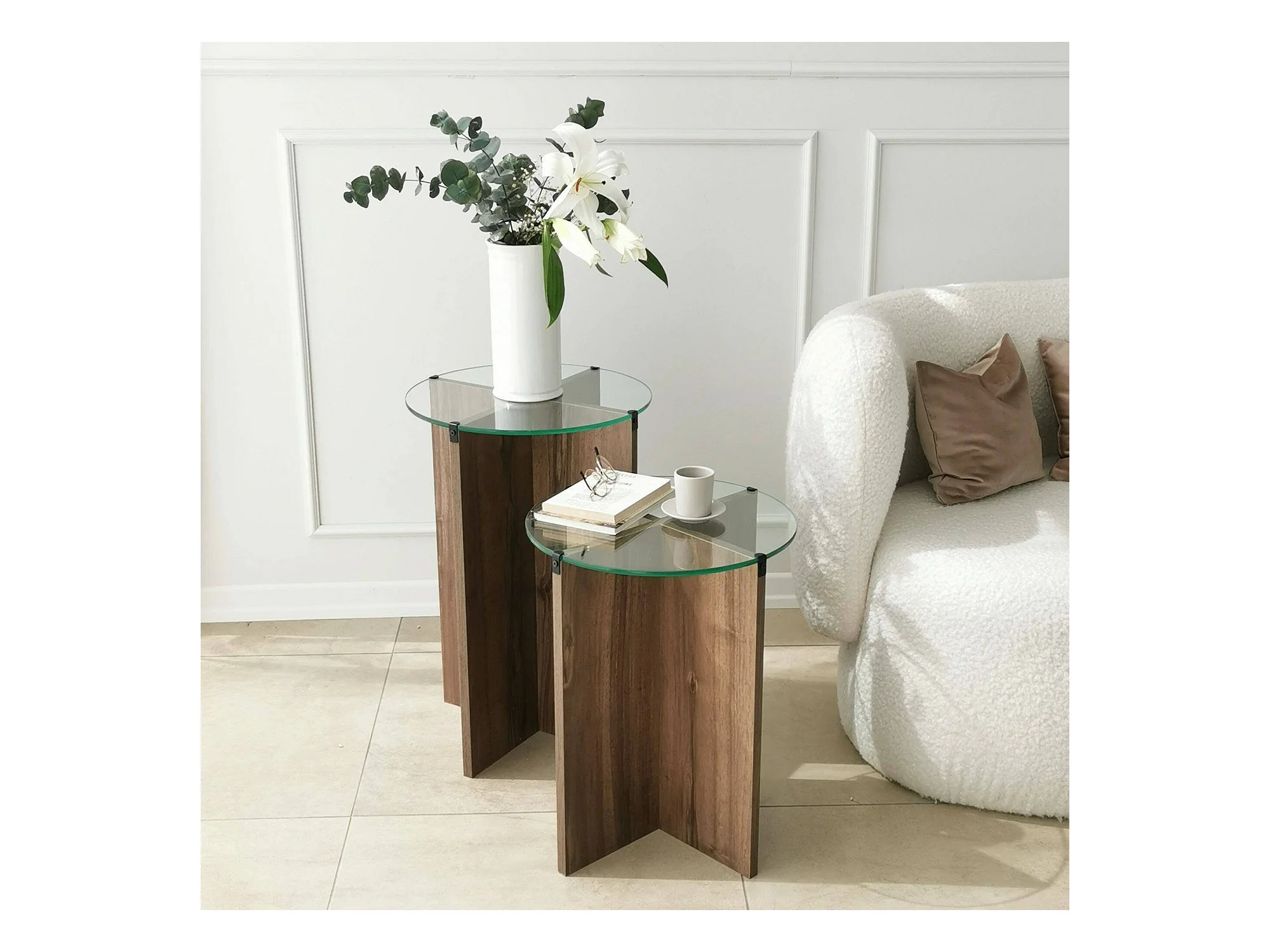 Table basse Enki, Table basse, Porte-revues pour canapé, Etagère de salon, 40x40h60 cm, Noyer