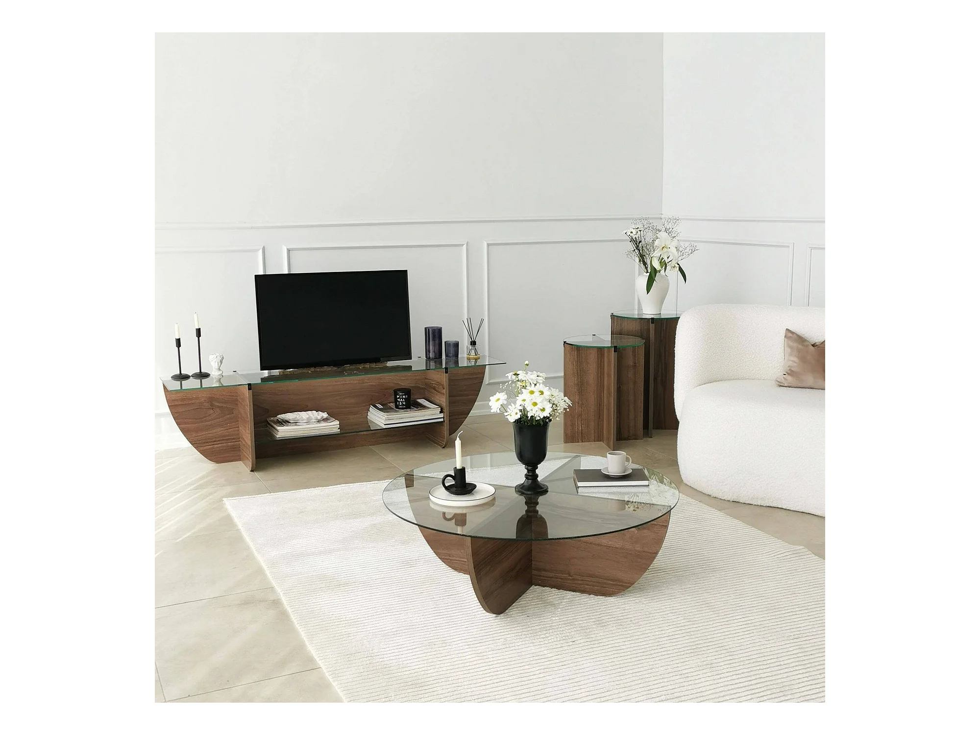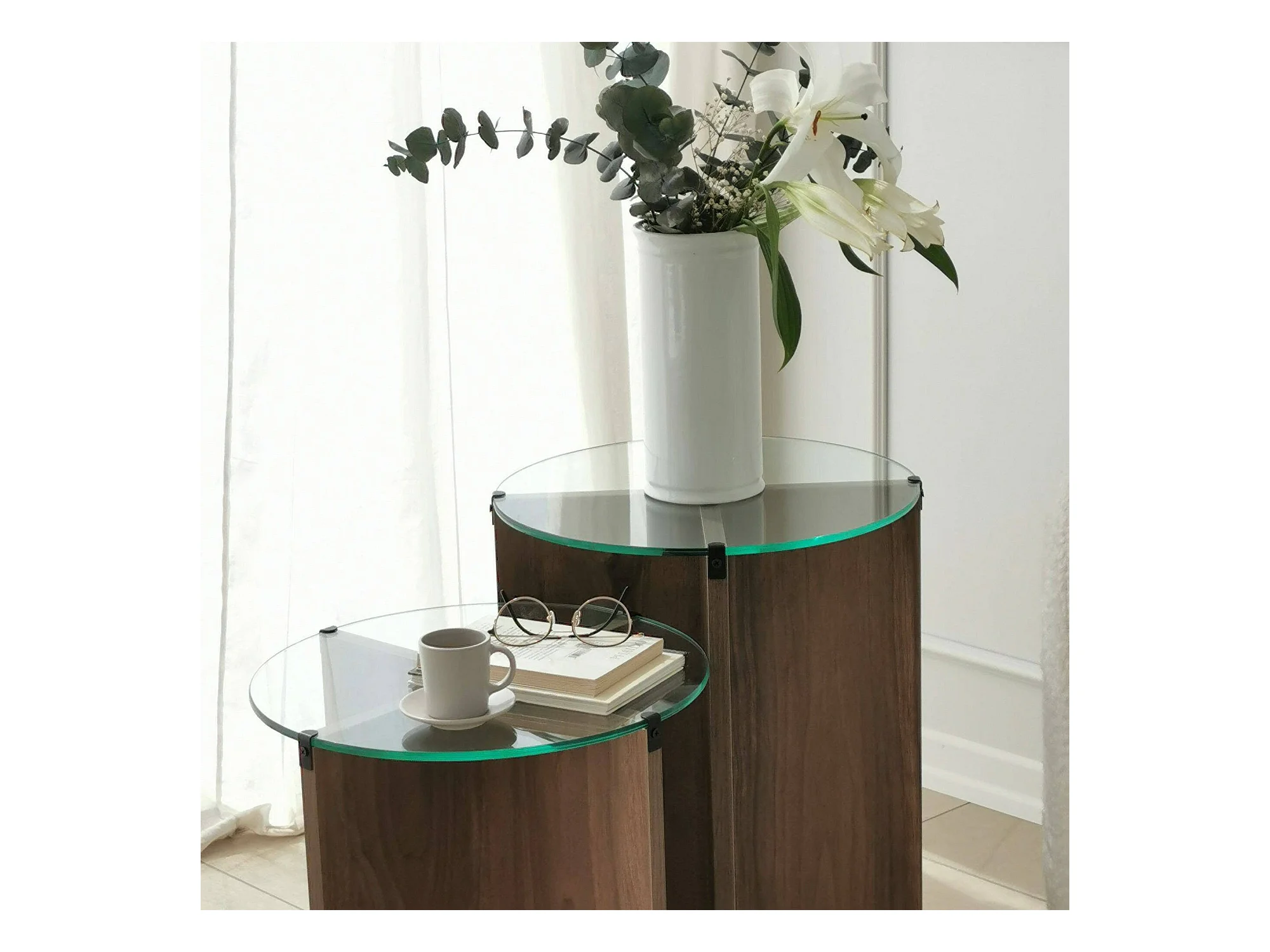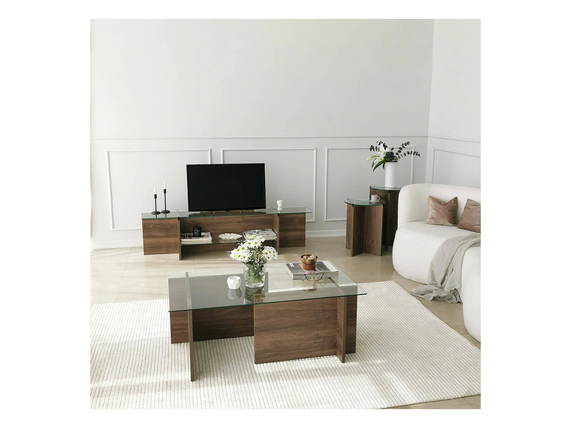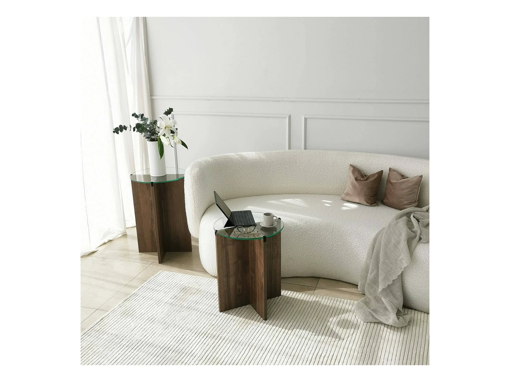 Table basse Enki, Table basse, Porte-revues pour canapé, Etagère de salon, 40x40h60 cm, Noyer