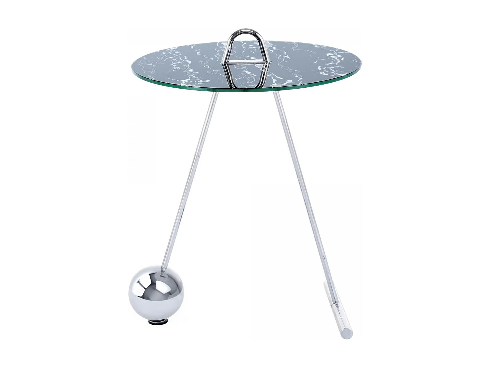 Table d'appoint ronde plateau émaillé gris et métal noir - LAK 0504