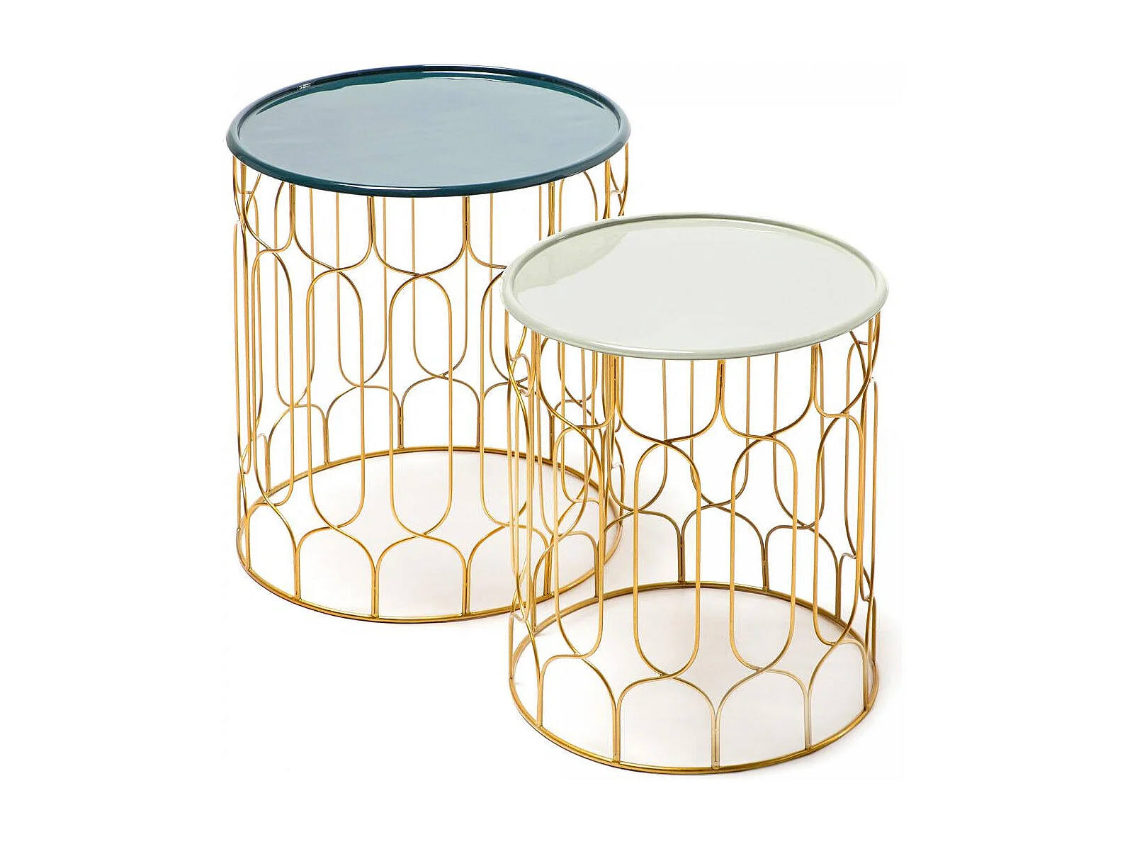 Table basse fait main en fer LOT DE 2 EDU 43x43 essence et gris clair