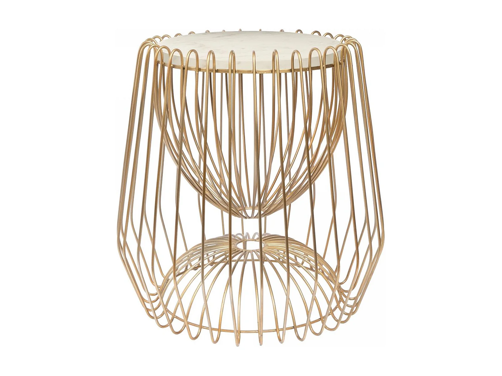 Table basse fait main en marbre ERE 50x50 blanc et laiton