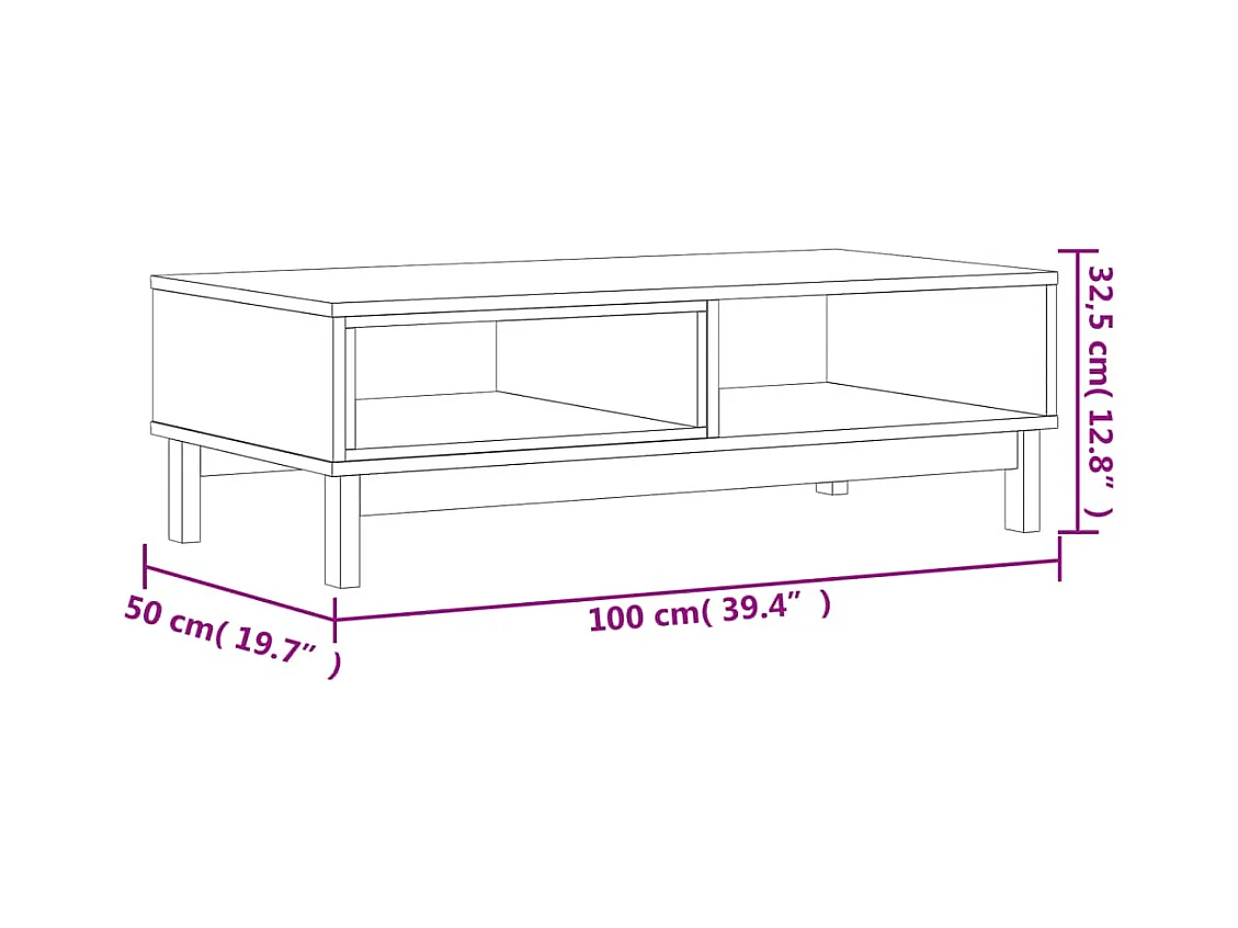 Table basse FLAM 100x50x32,5 bois de pin massif
