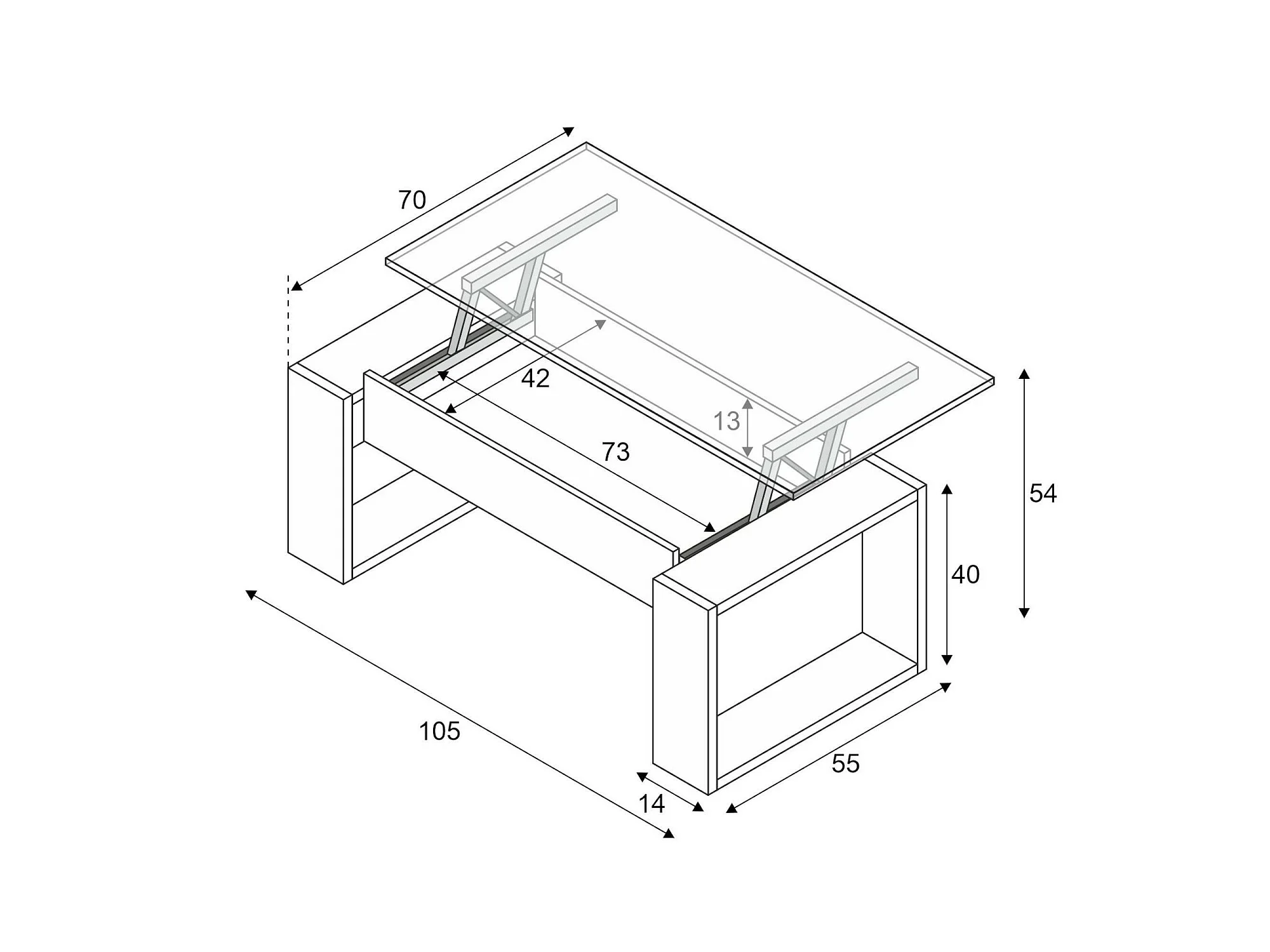 Table basse Flint, Table basse avec plateau relevable, Table basse de salon, 105x55h45/56 cm, Blanc