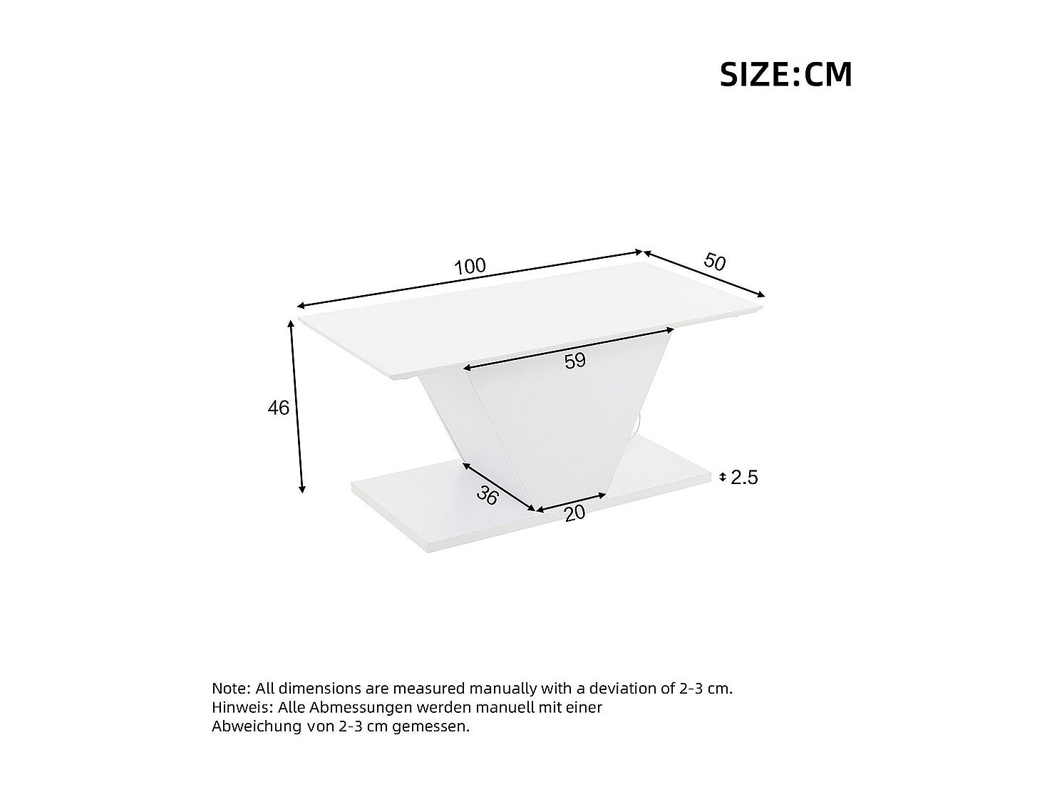 Table basse design avec LED intelligente, Blanc brillant et verre intégré, 100x50 cm