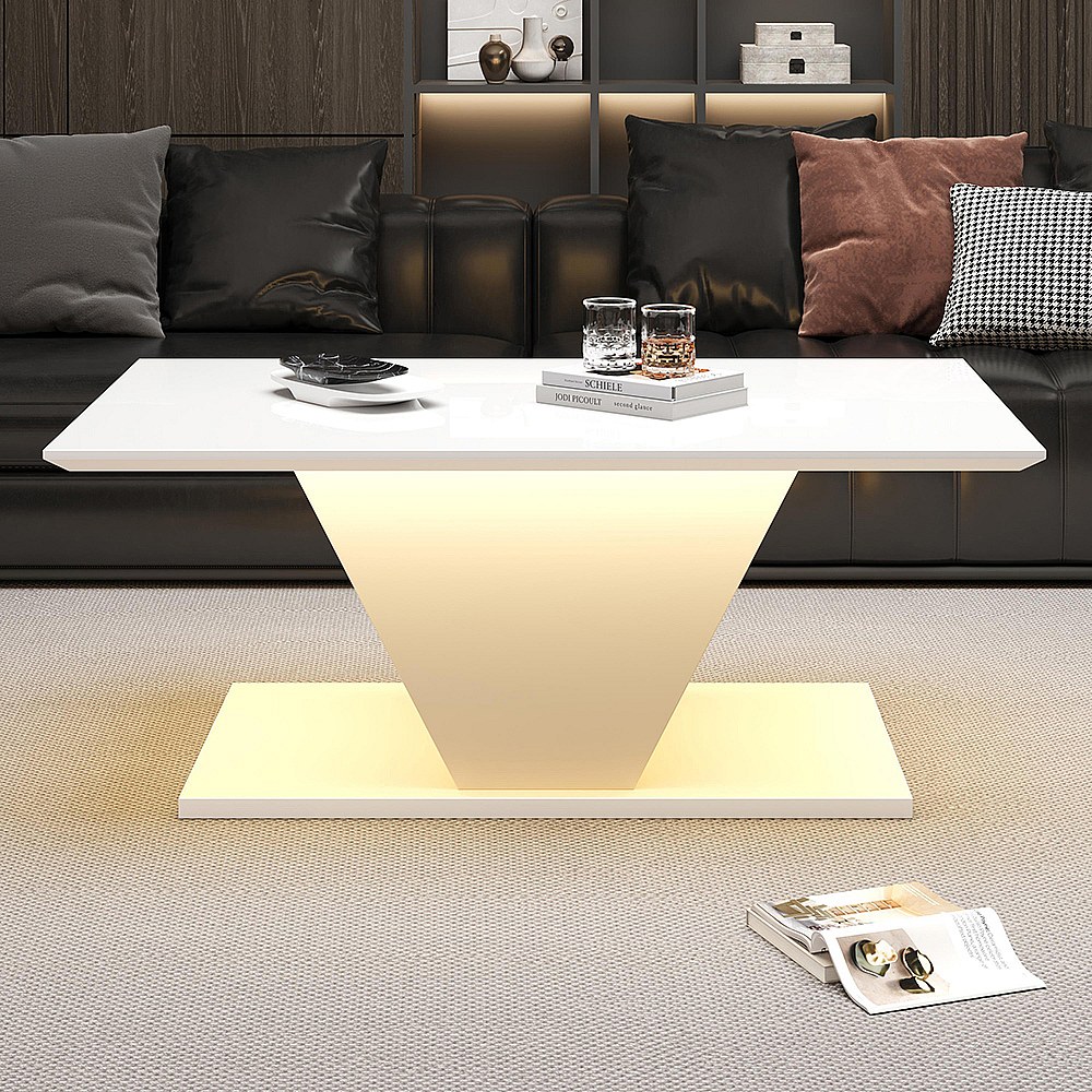 Table basse forme spéciale V LED éclairage brillante petit espace blanche d'appoint