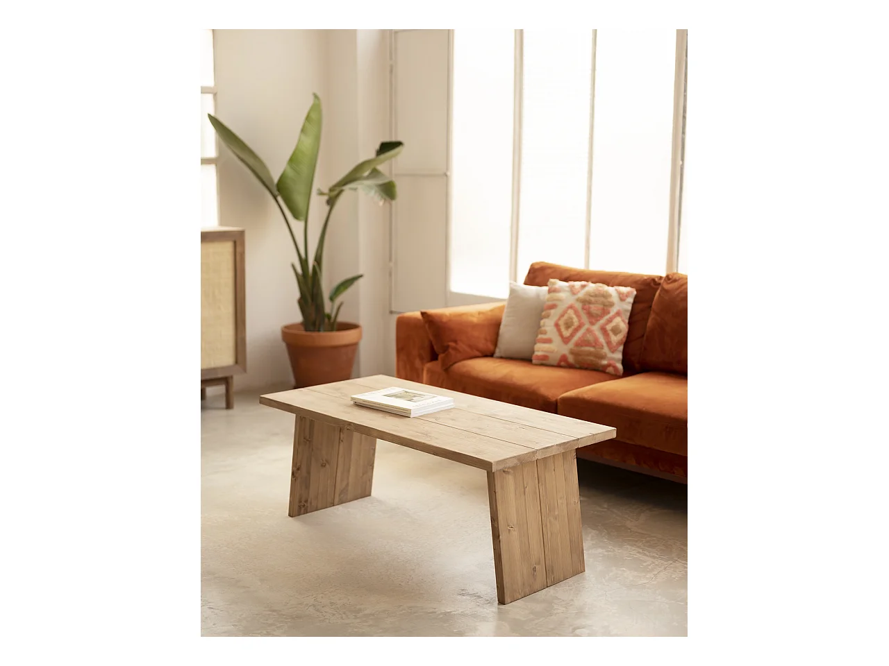 Table basse en bois de pin vieilli 120x45cm - FRIDA - DECOWOOD