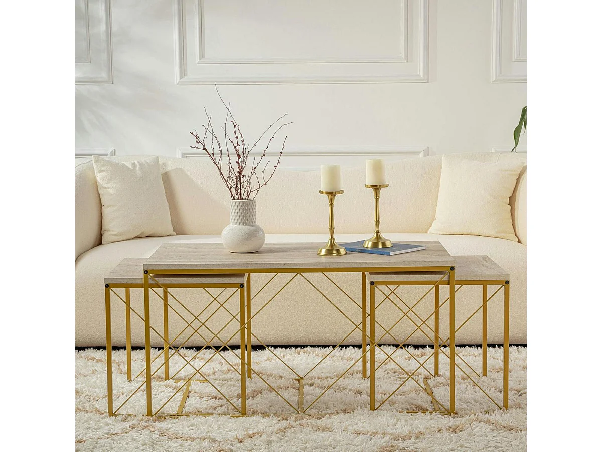 Table basse gigogne effet travertin pied doré (lot de 3) JENA