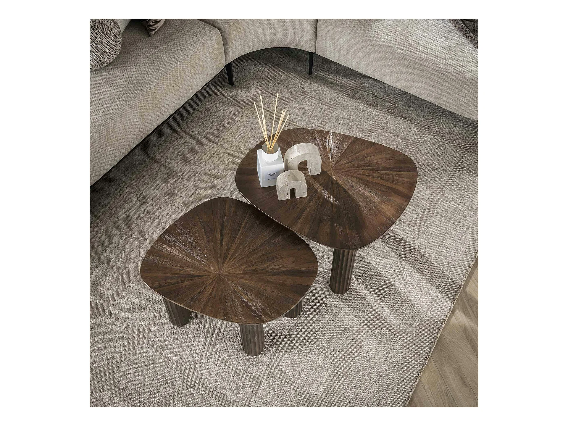 Table basse gigogne en bois de teck forme organique carrée (lot de 2) YOGY