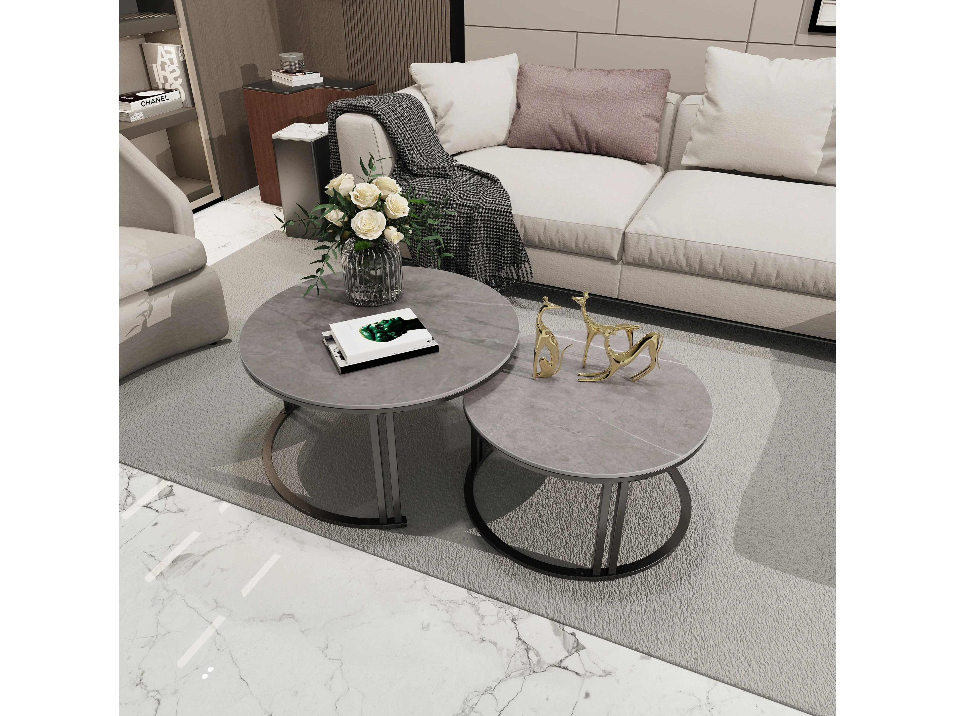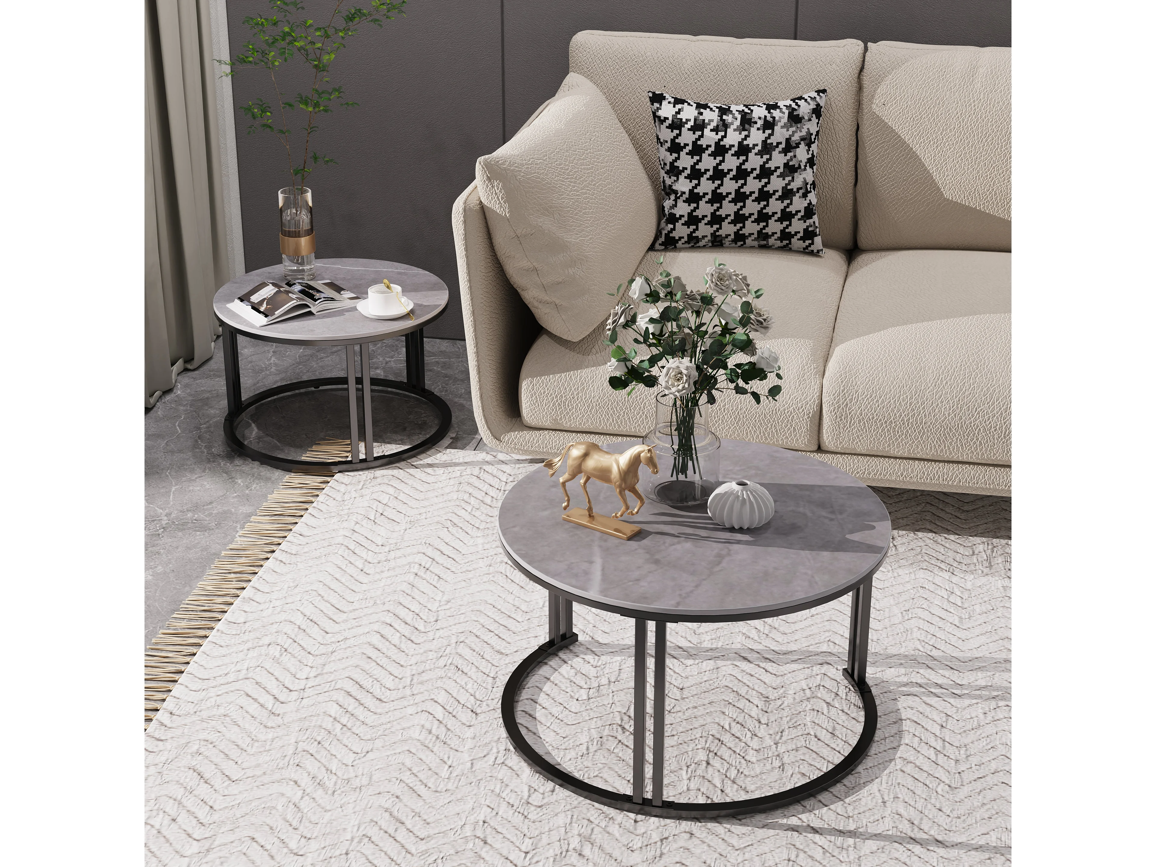 Table basse gigogne ronde lot de 2 avec effet marbre pour salon bureau 70x70x40cm / 57x57x35cm