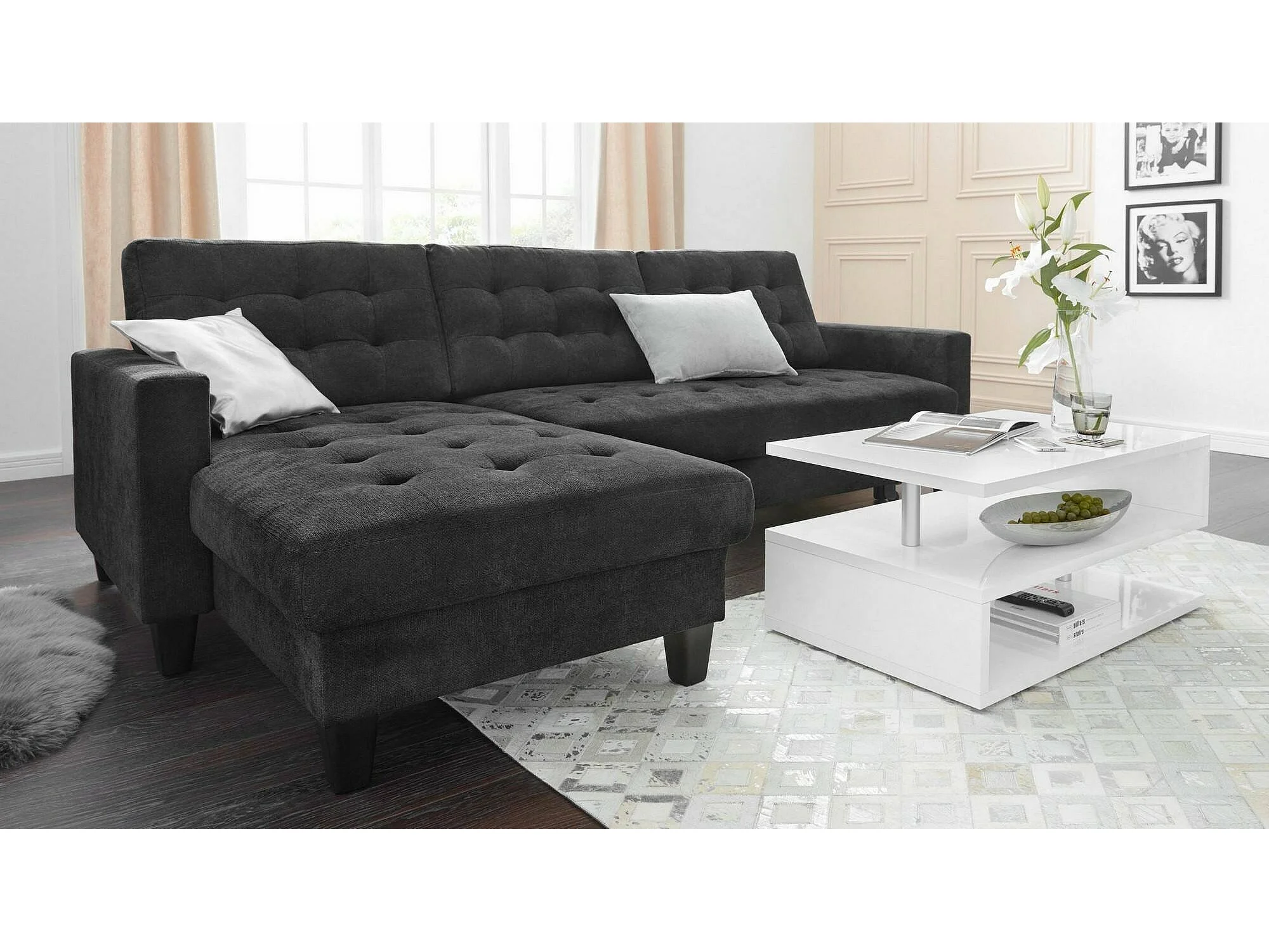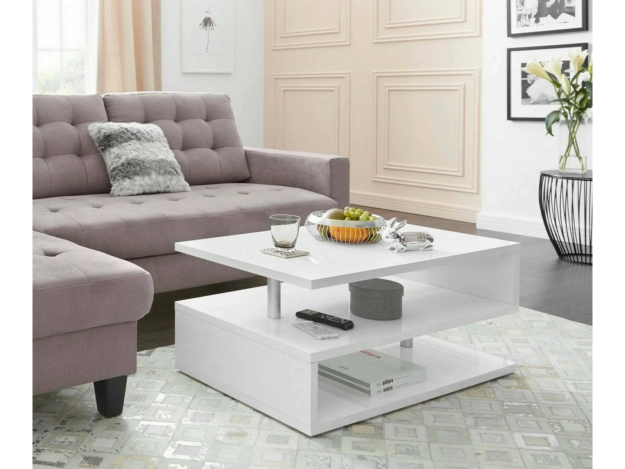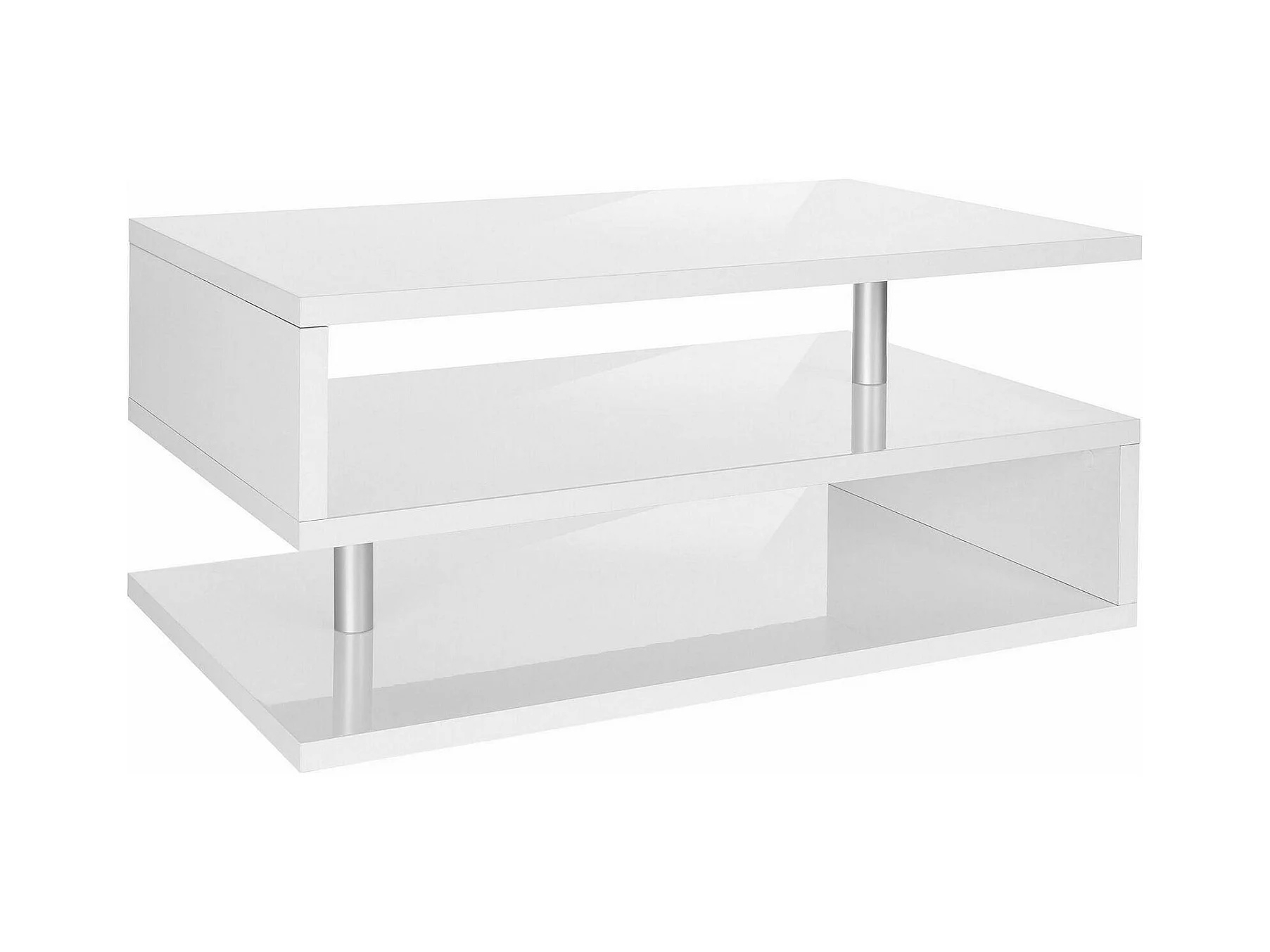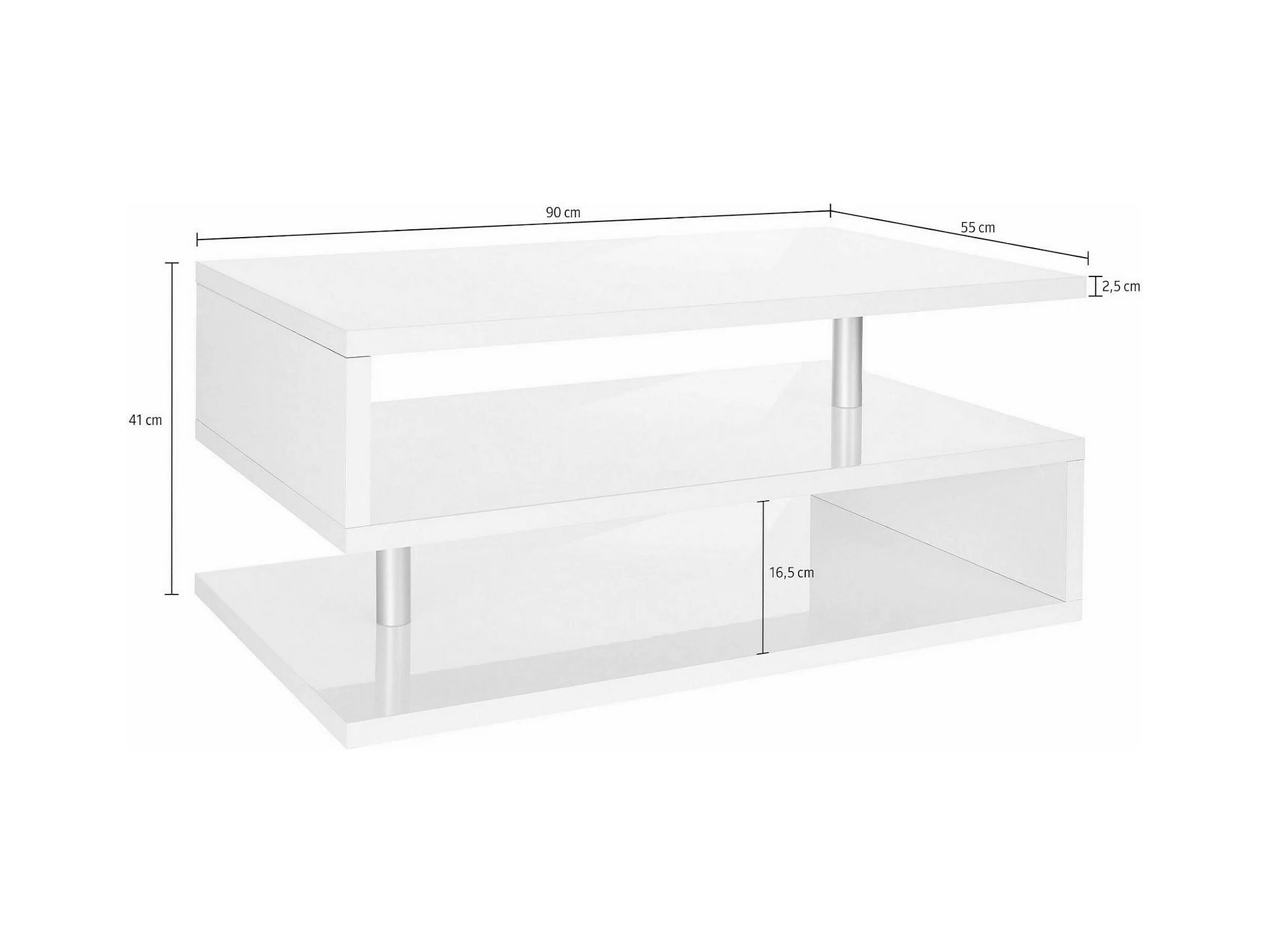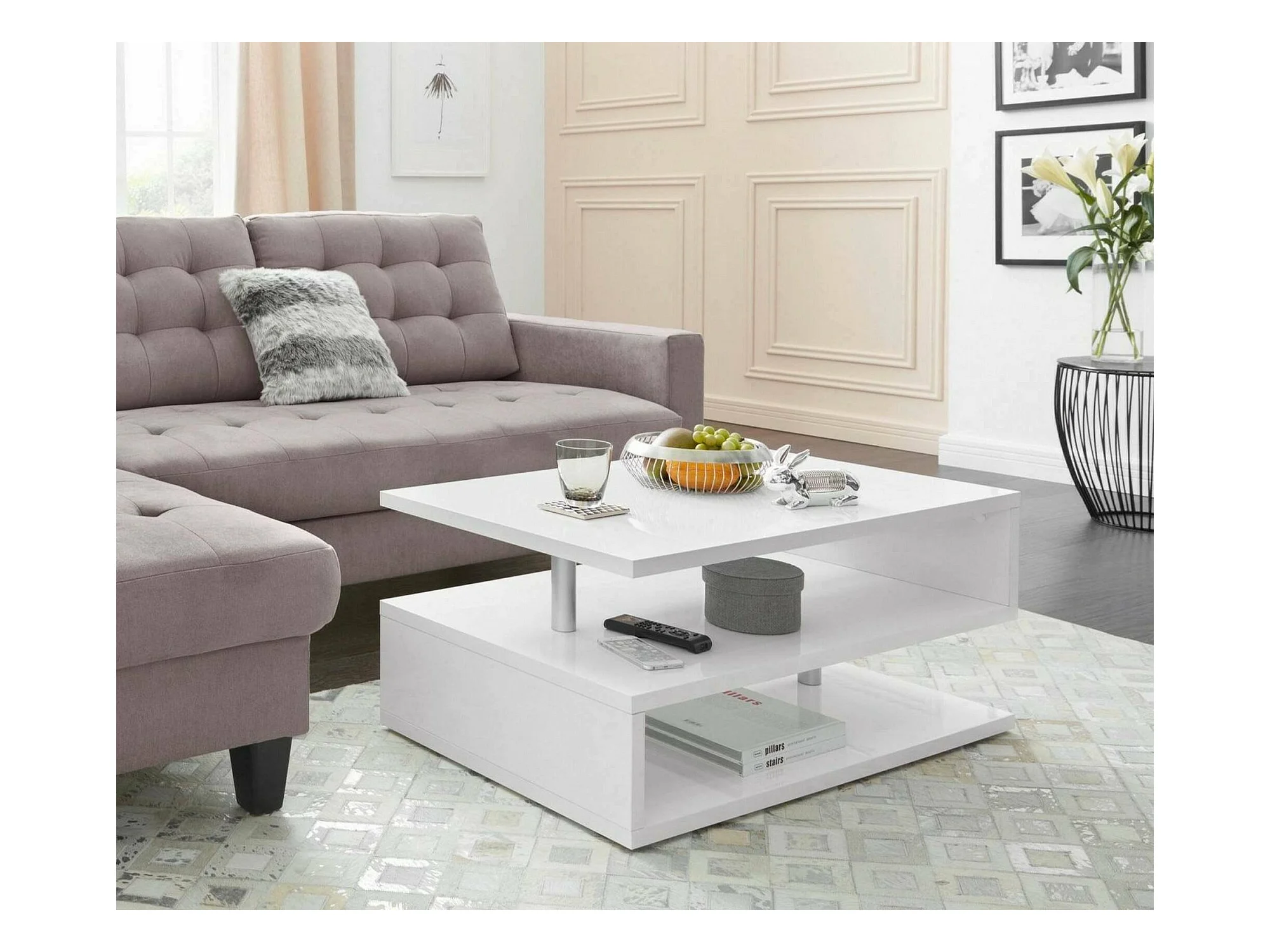 Table basse Goffredo, Table basse de salon, Meuble de rangement bas, Table basse, 90x55h41 cm, Blanc brillant
