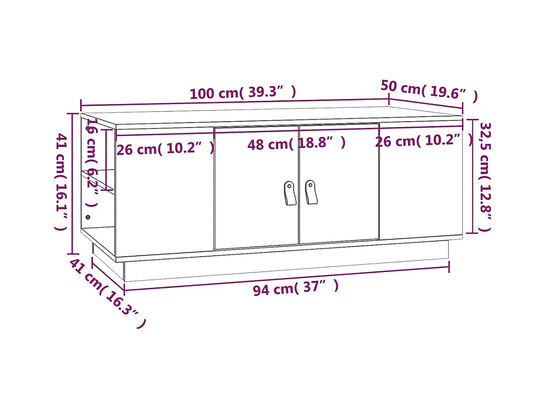 Table basse Gris 100x50x41 cm Bois massif de pin