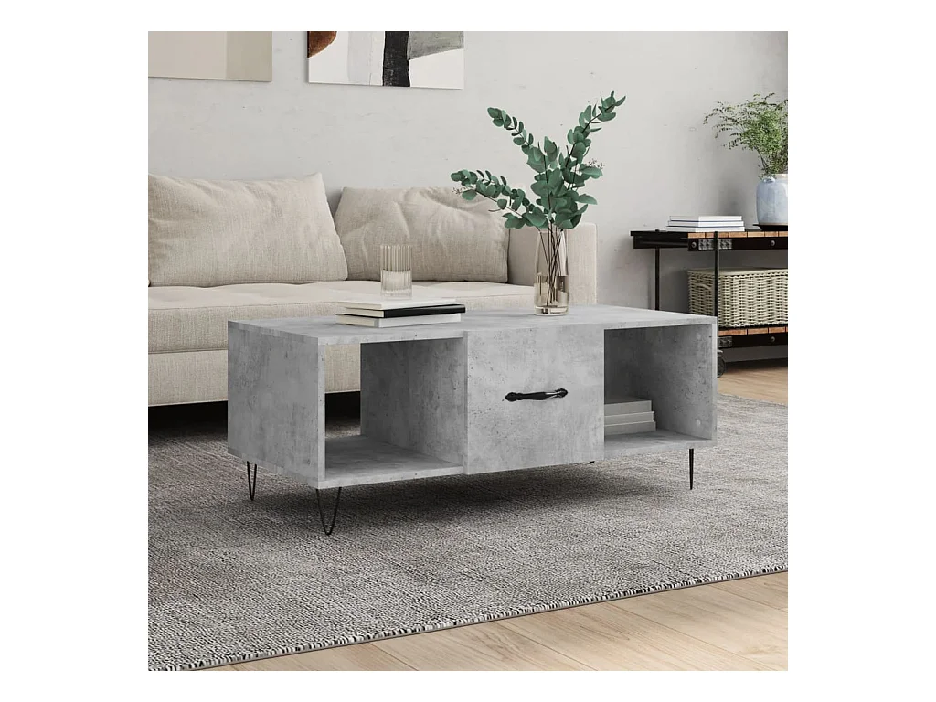 Table basse gris béton 102x50x40 cm bois d'ingénierie