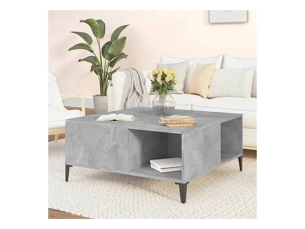 Table basse gris béton 80x80x36,5 bois d'ingénierie