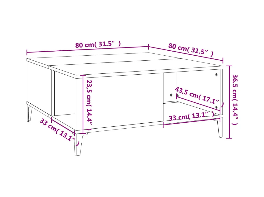 Table basse sonoma gris 80x80x45 bois d'ingénierie et métal
