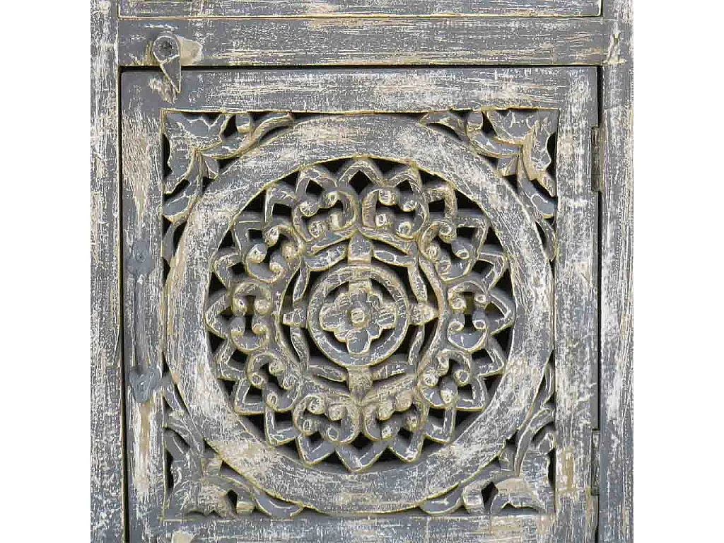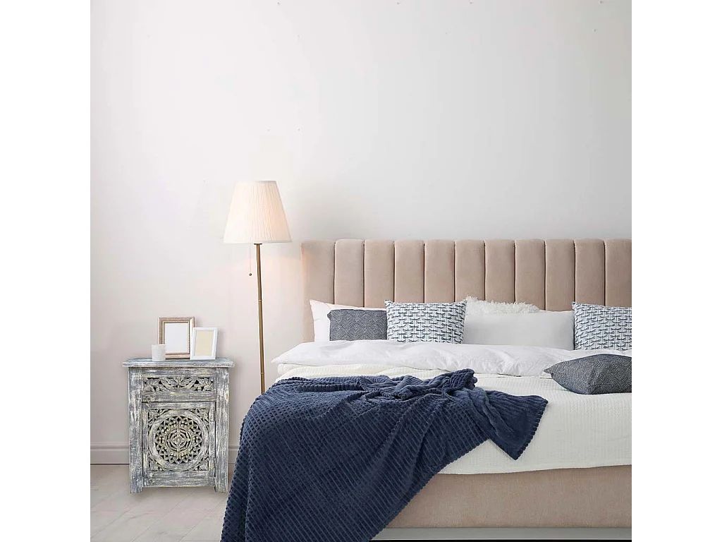 Table de chevet en bois avec finition artisanale, dimensions 60x40x70 cm.