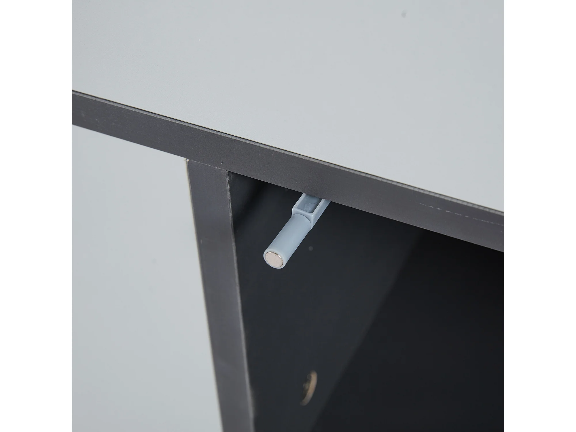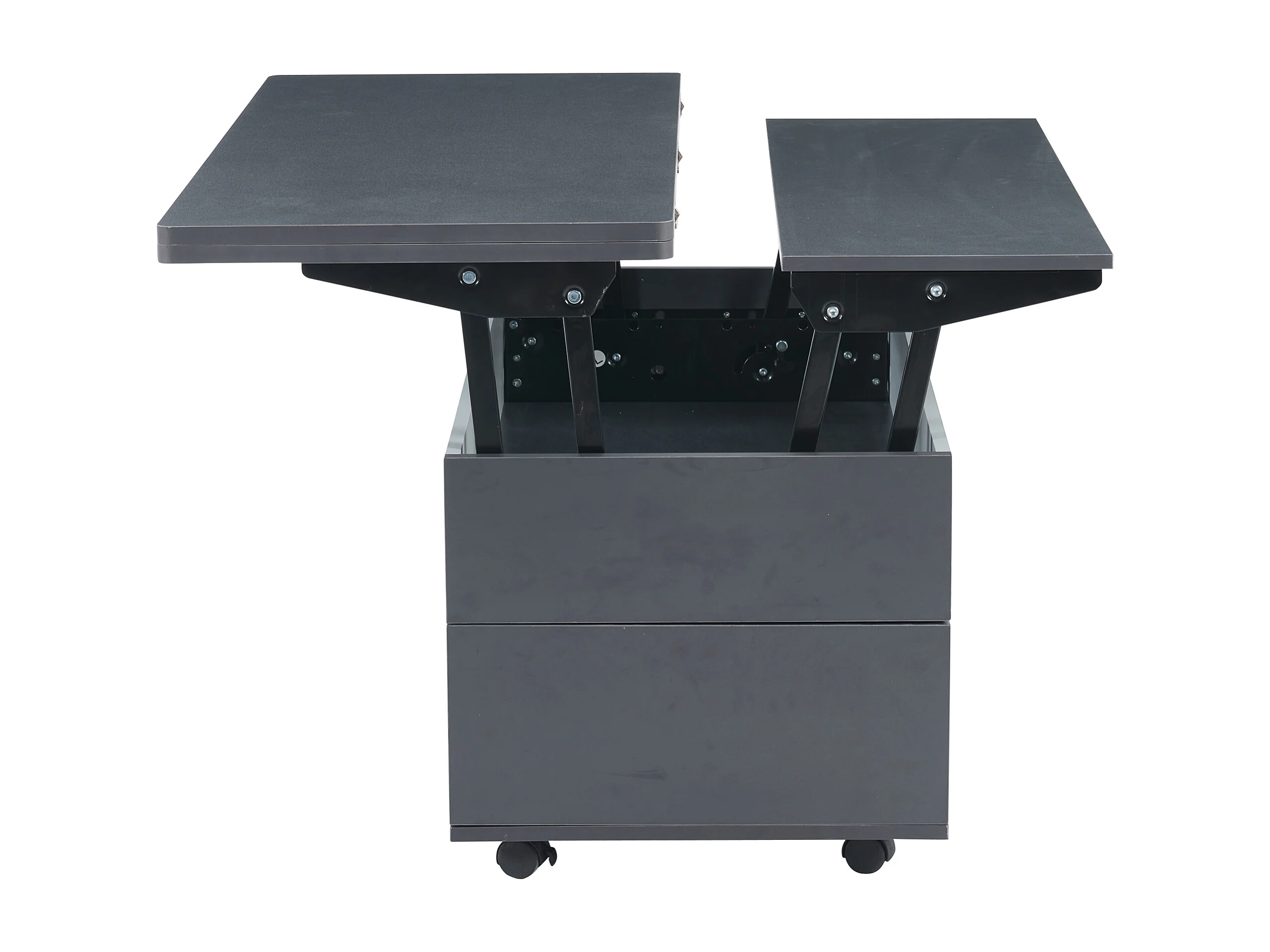Table basse grise à hauteur réglable - Table basse avec 1 tiroir et 1 porte - rangement semi-ouvert