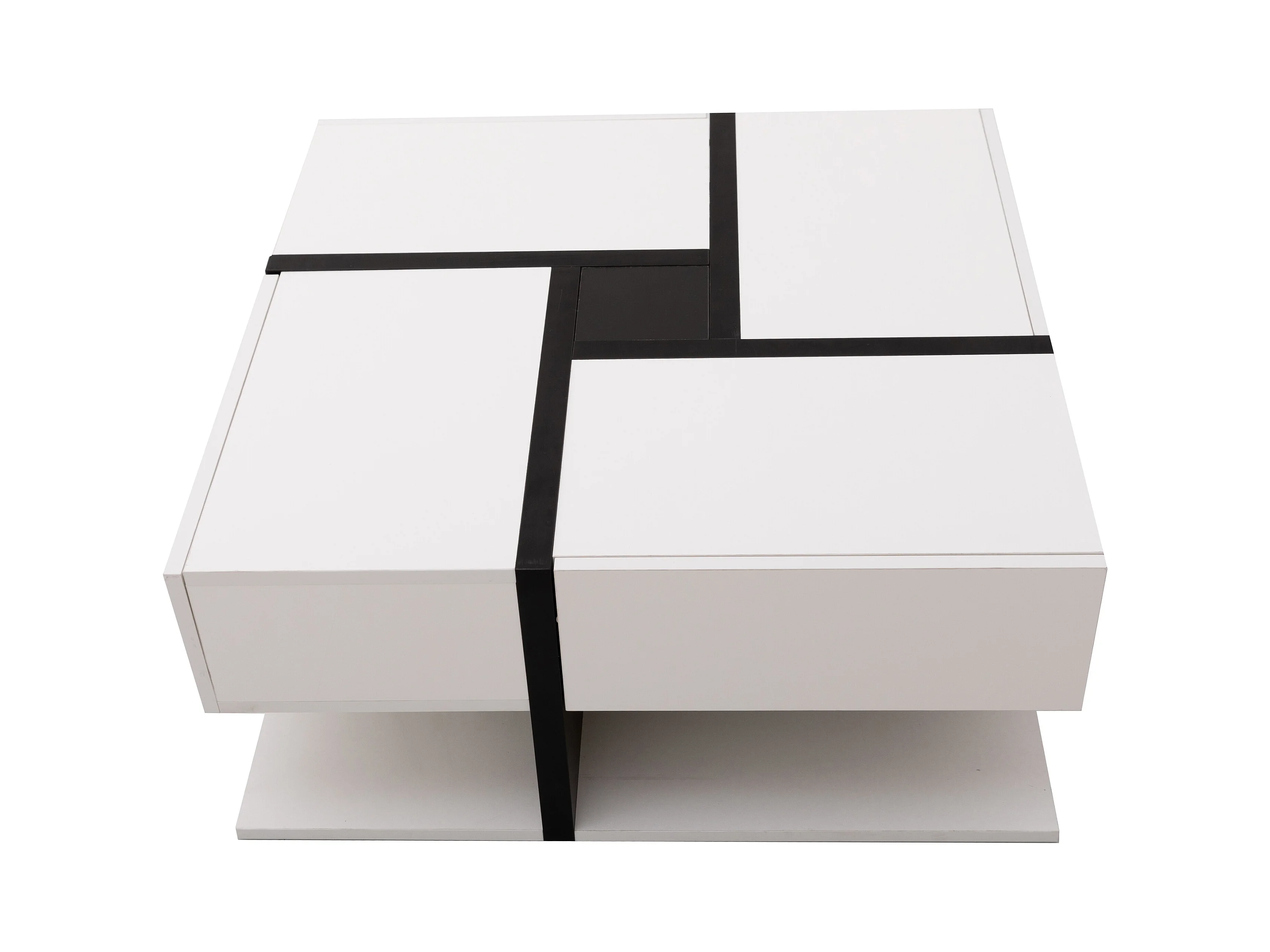Table basse carrée 78x78x36 cm, avec 4 tiroirs de rangement - blanc