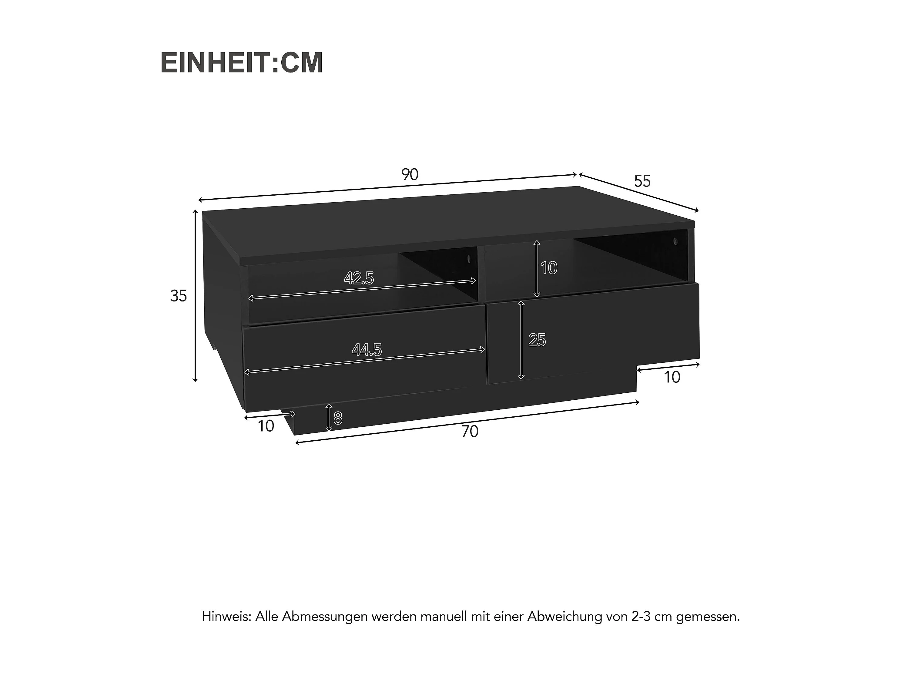 Table basse noire - table basse brillante avec bande lumineuse LED - 4 tiroirs - pour le salon et le bureau