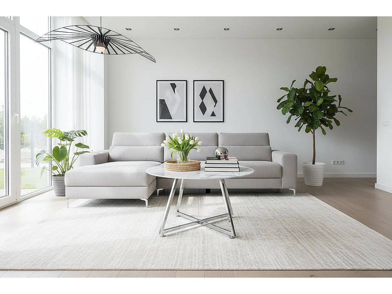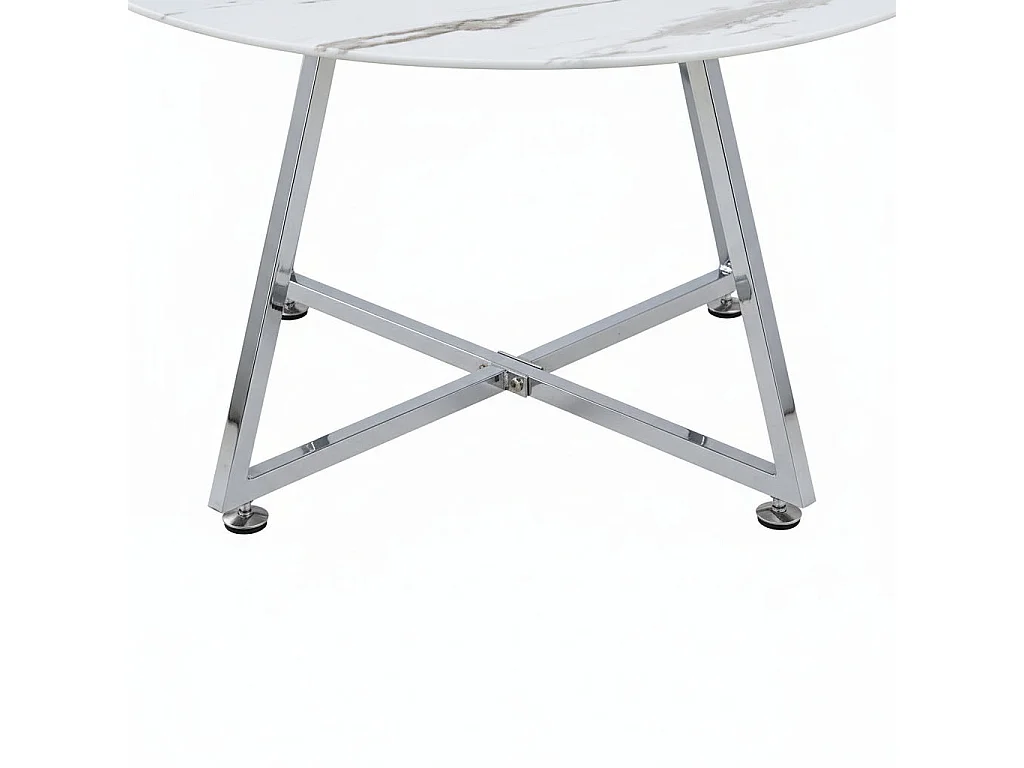 Table Basse Ronde HELOISE Métal Chrome Plateau Céramique Effet Marbre Blanc D80xH45cm