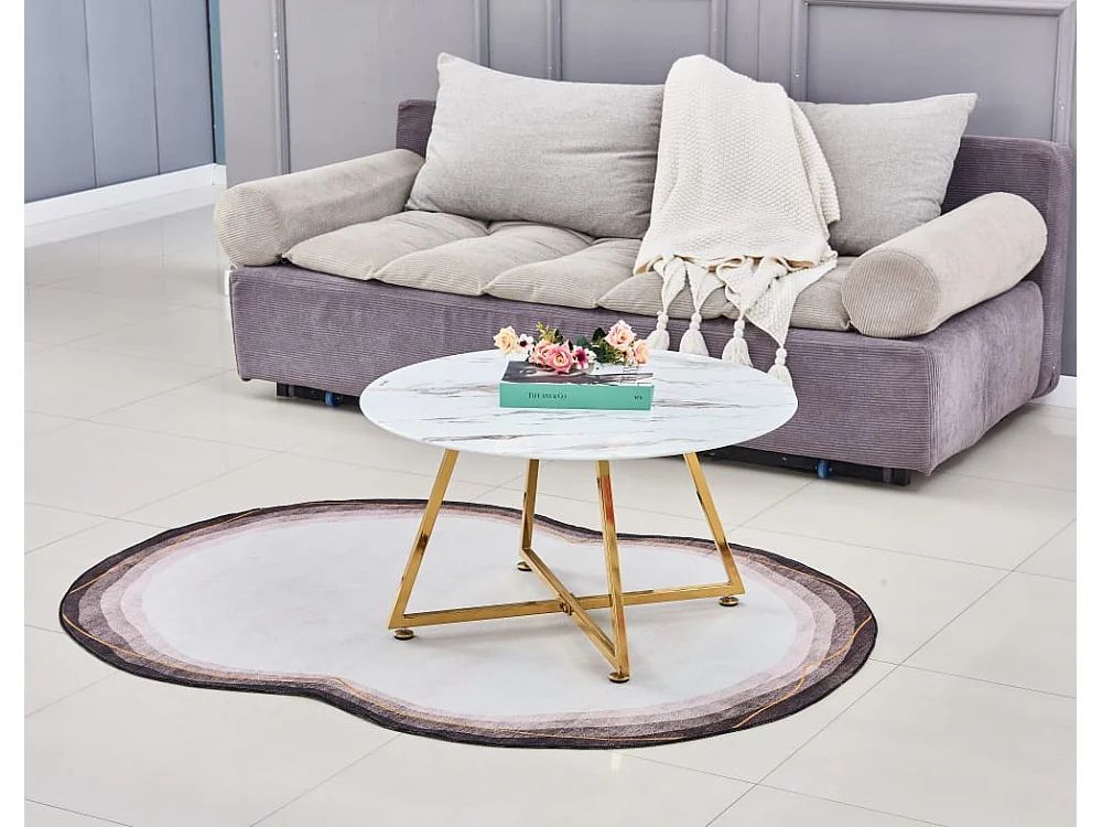 Table Basse Ronde HELOISE Métal Gold Plateau Céramique Effet Marbre Blanc D80xH45cm