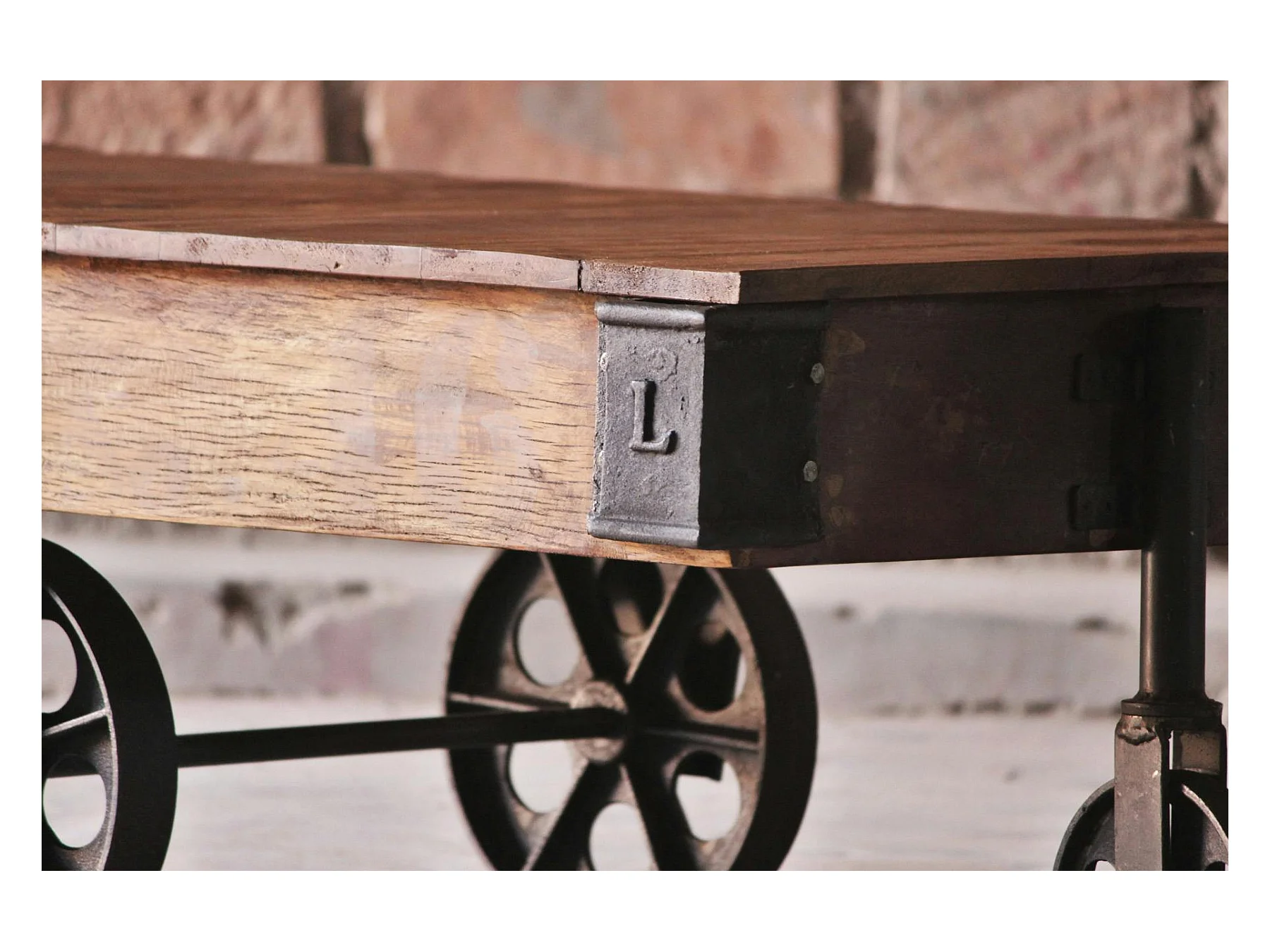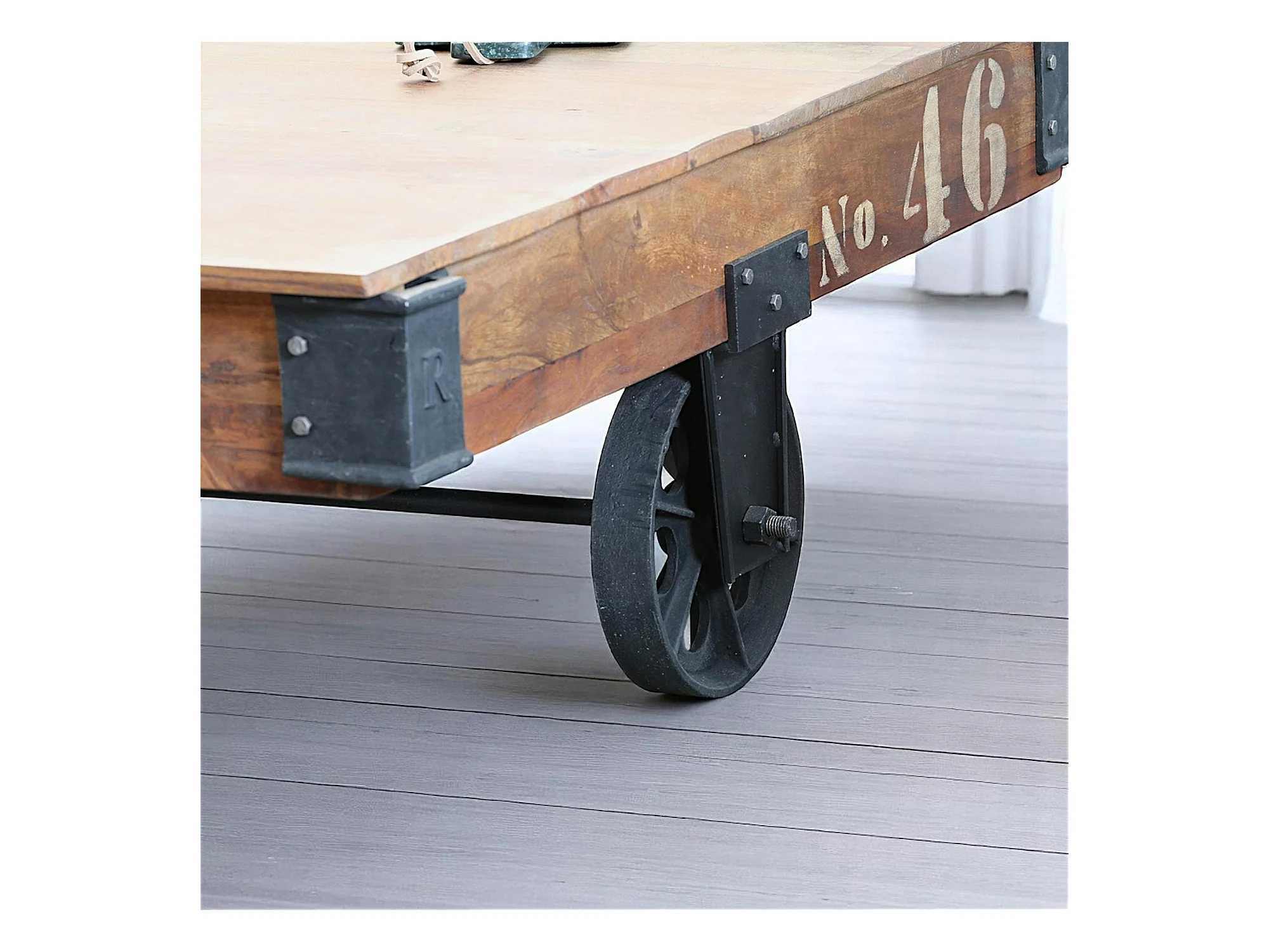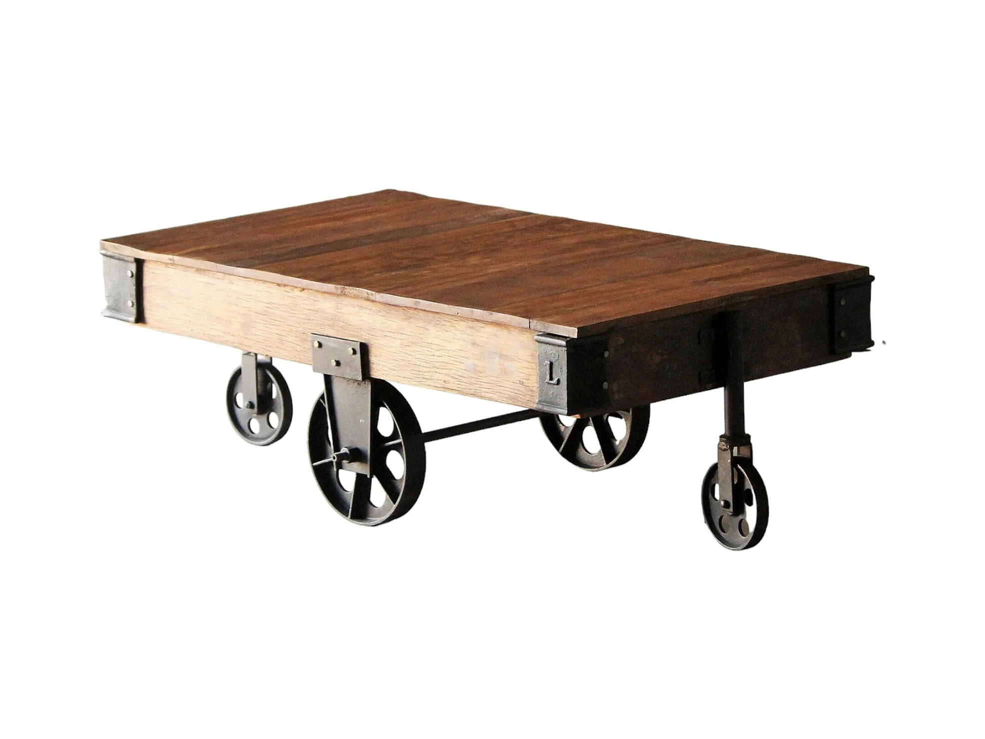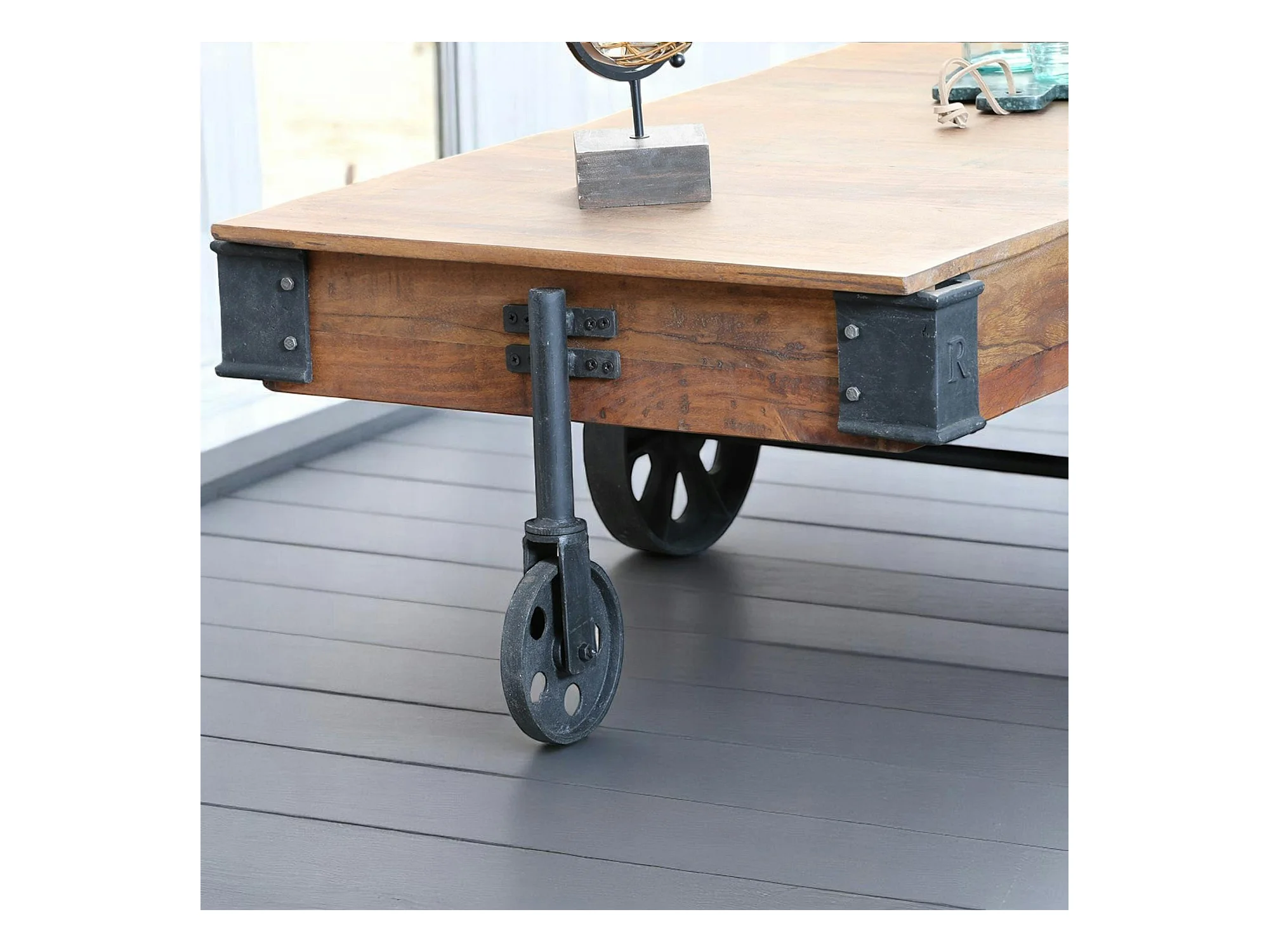 Table basse industrielle vintage bois recyclé roues LEEDS