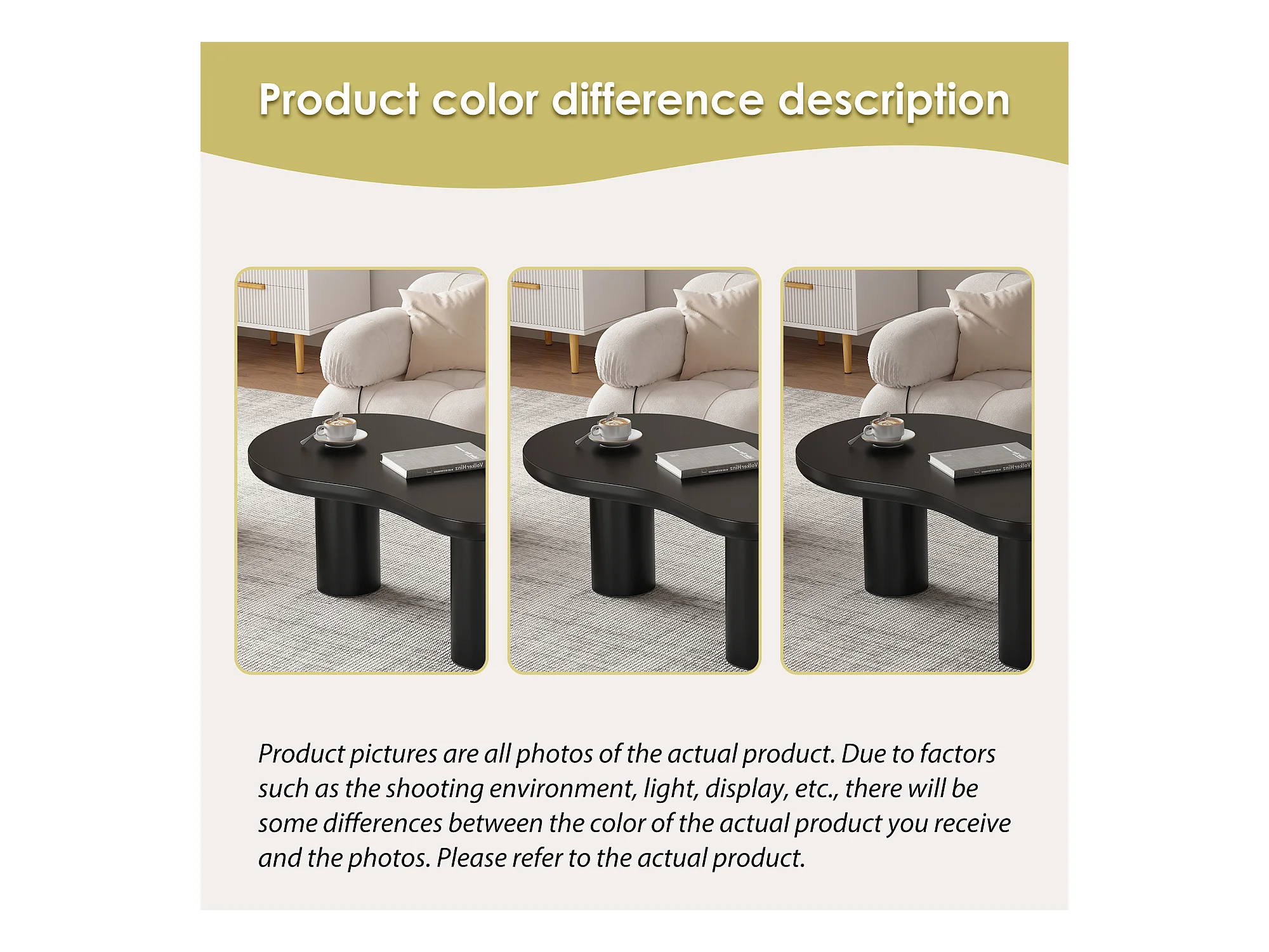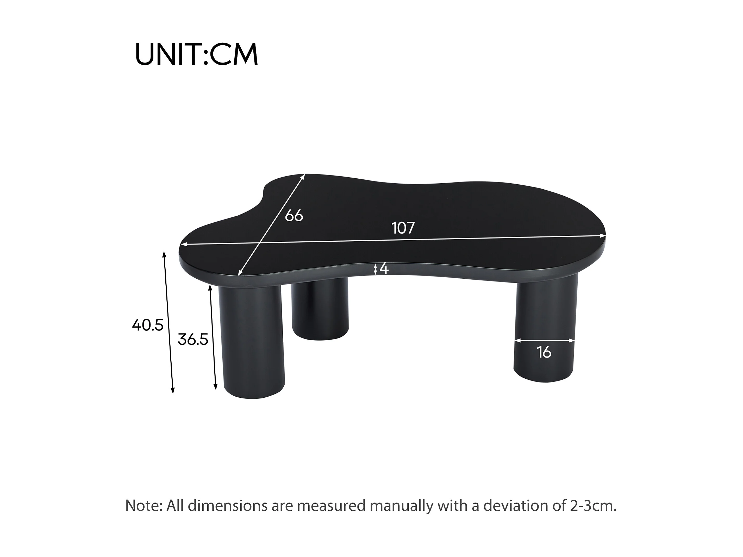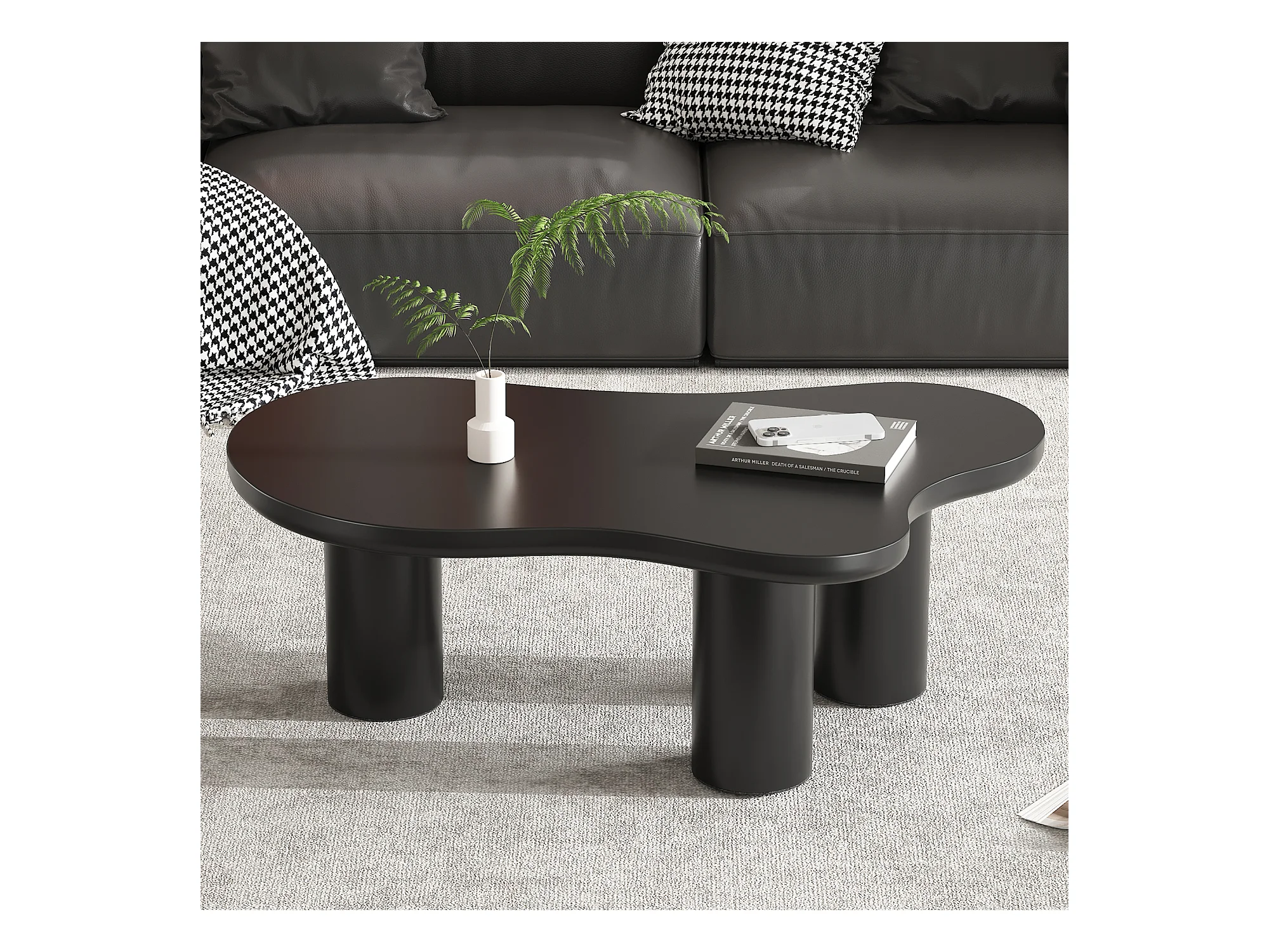 Table basse irrégulière en forme de nuage - 107 x 66 x 40.5 cm - Plateau en MDF et pieds en PVC - Noir