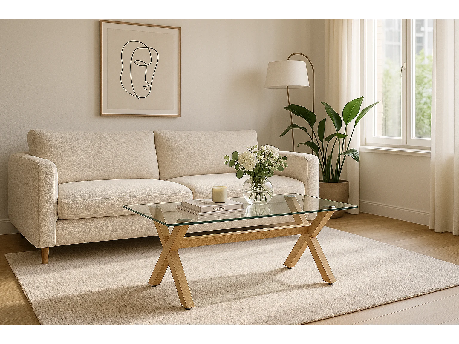 Table basse IXE Bois & Verre Transparent 120x60x45 cm